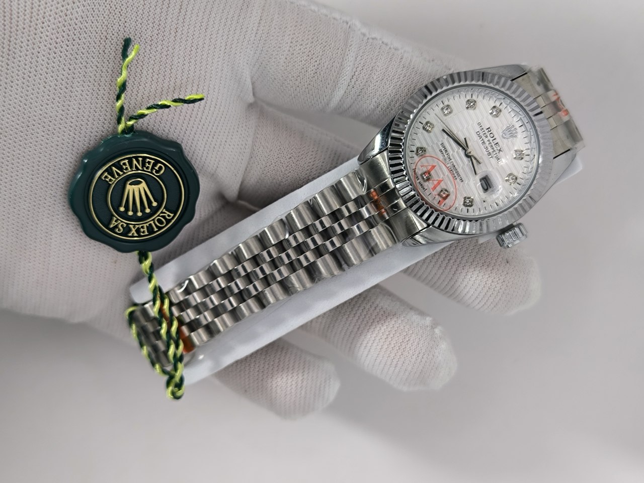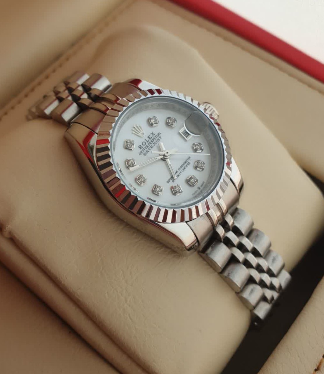 ساعت مچی زنانه رولکس با موتور ژاپن کوارتز و کیفیت فوقالعاده AAAA انتخابی لوکس و ماندگار برای بانوان خوشسلیقه است این مدل با صفحه الماسی درخشان بند استیل ضد زنگ و ضد حساسیت قفل مخفی رولکسی و تقویم تلسکوپی طراحی شده و کاملاً ضد آب است تضمین رنگ و عملکرد موتور به همراه جعبه هدیه رولکس اصالت و کیفیت این محصول را کامل میکند این ساعت خاص از فروشگاه اینترنتی روبی مد ارائه میشود.