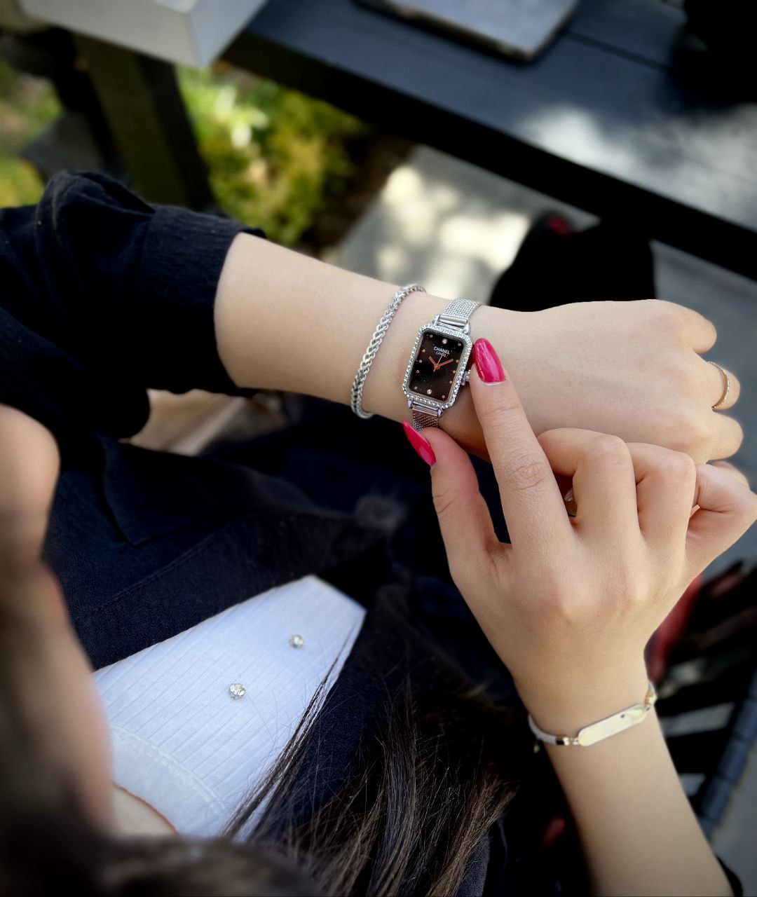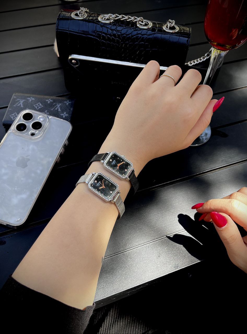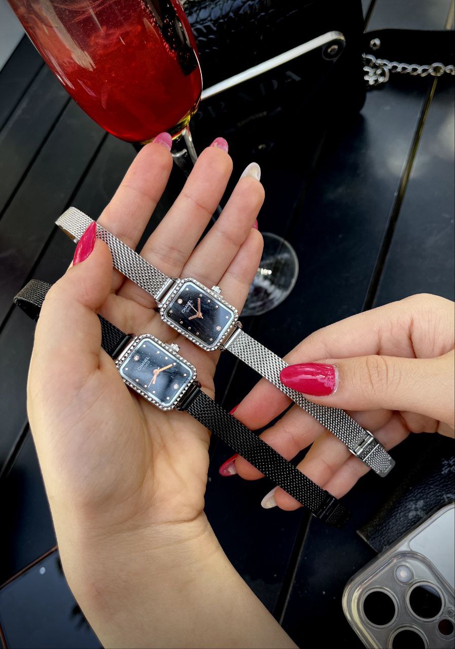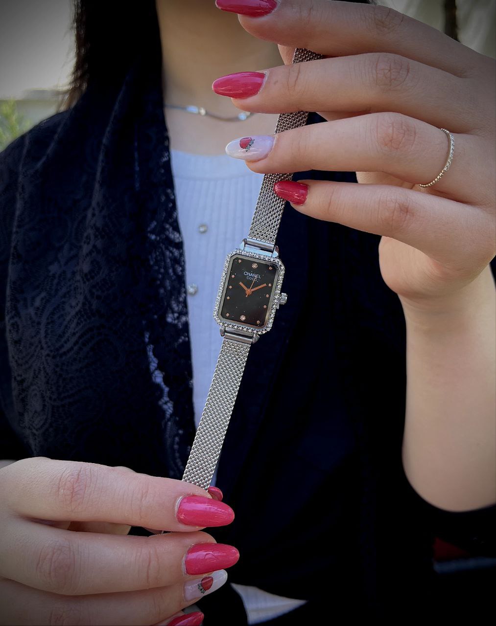 ساعت مچی زنانه شنل بوردو Chanel با بند استیل بافت و طرح برلیان انتخابی خاص برای بانوان خوشسلیقه است این مدل های کپی با کیفیت عالی و موتور کوارتز دقیق طراحی شده و با قفل ریلی راحتی و امنیت را در استفاده روزمره فراهم میکند جلوهای لوکس و زنانه که در فروشگاه اینترنتی روبی مد در دسترس شماست.