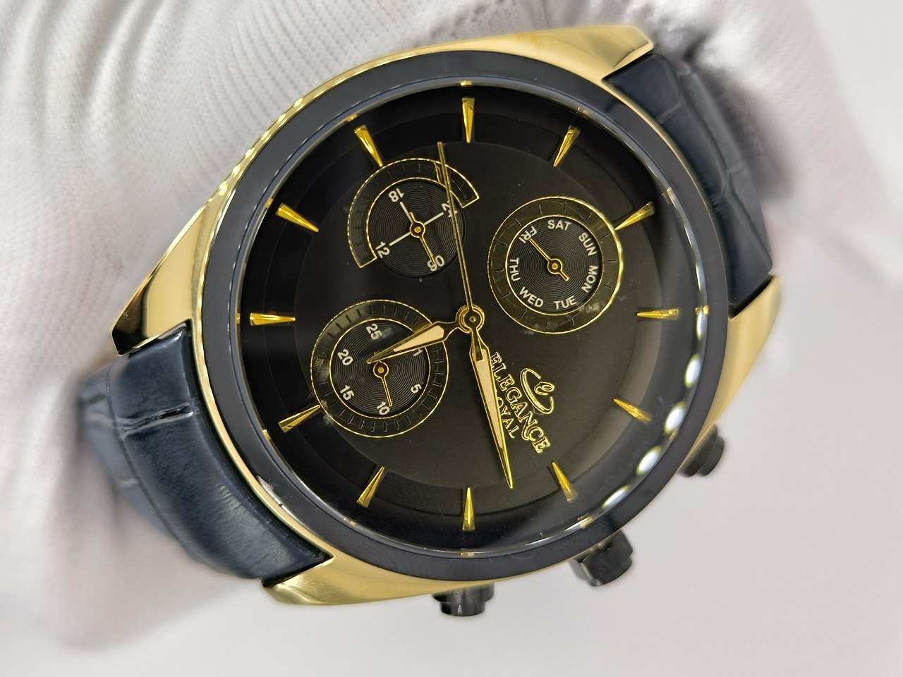 🌈 بند چرم مشکی دور قاب طلایی صفحه مشکی
