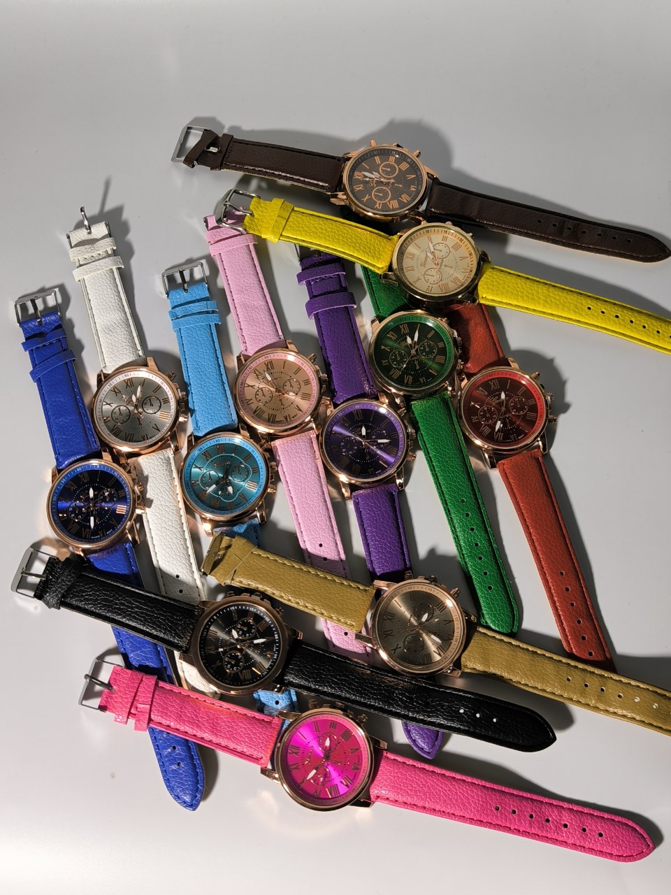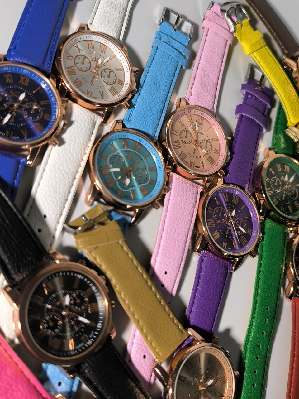 ساعت مچی دخترانه جینوا Geneva بند چرم رنگ بندی