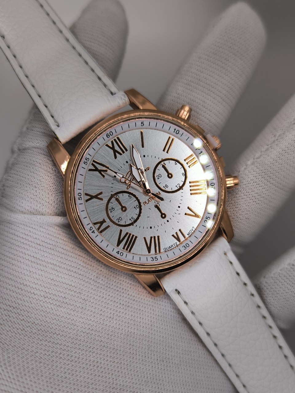 ساعت مچی دخترانه جینوا با طراحی یونانی و قاب رزگلد انتخابی شیک و خاص برای استایلهای روزمره و مجلسی است این مدل با بند چرمی رنگبندیشده و قفل سگکی راحتی و تنوع را همزمان فراهم میکند طرح سه موتوره روی صفحه جلوهای مدرن به ساعت داده و قابلیت ضد آب بودن آن را برای استفاده روزانه مناسب کرده است این محصول را میتوانید از فروشگاه اینترنتی روبی مد تهیه کنید و از زیبایی و کیفیت آن لذت ببرید.