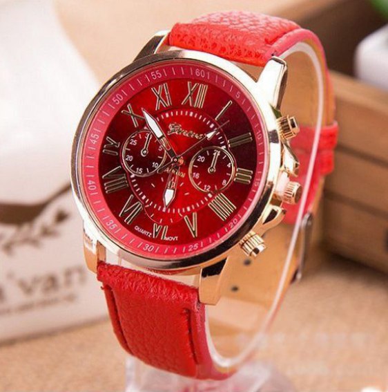 ساعت مچی دخترانه قرمز جینوا Geneva بند چرم