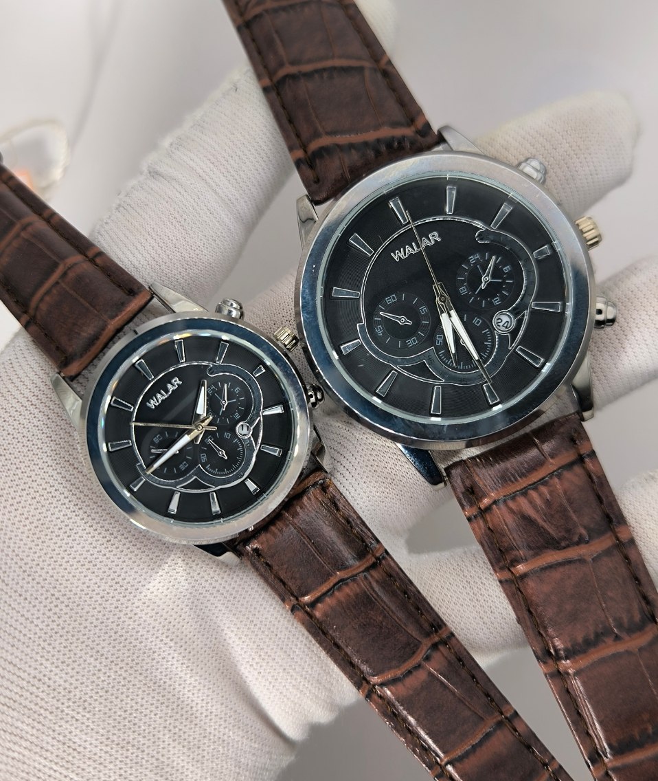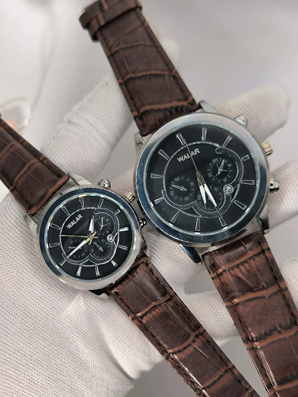 ست ساعت مچی زنانه و مردانه والار WALAR بند چرمی