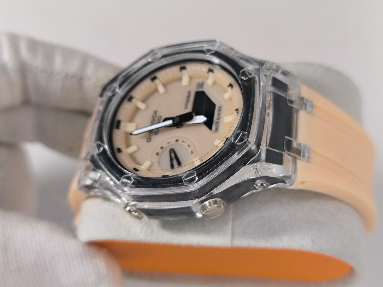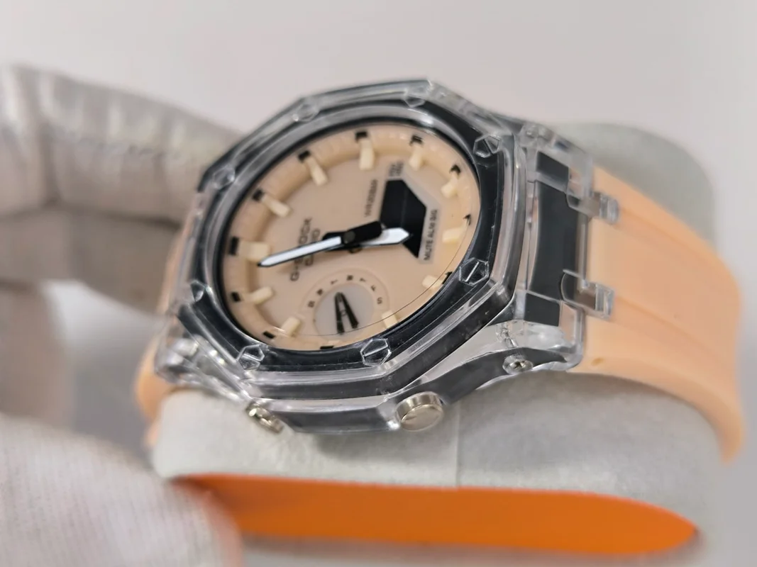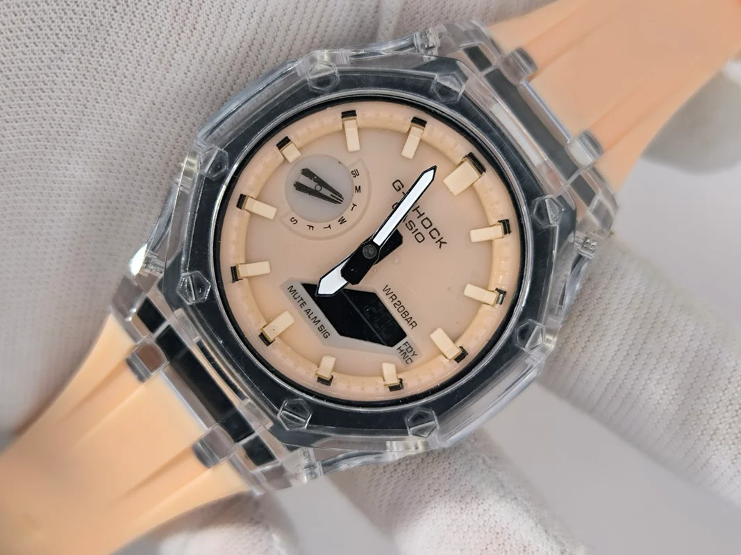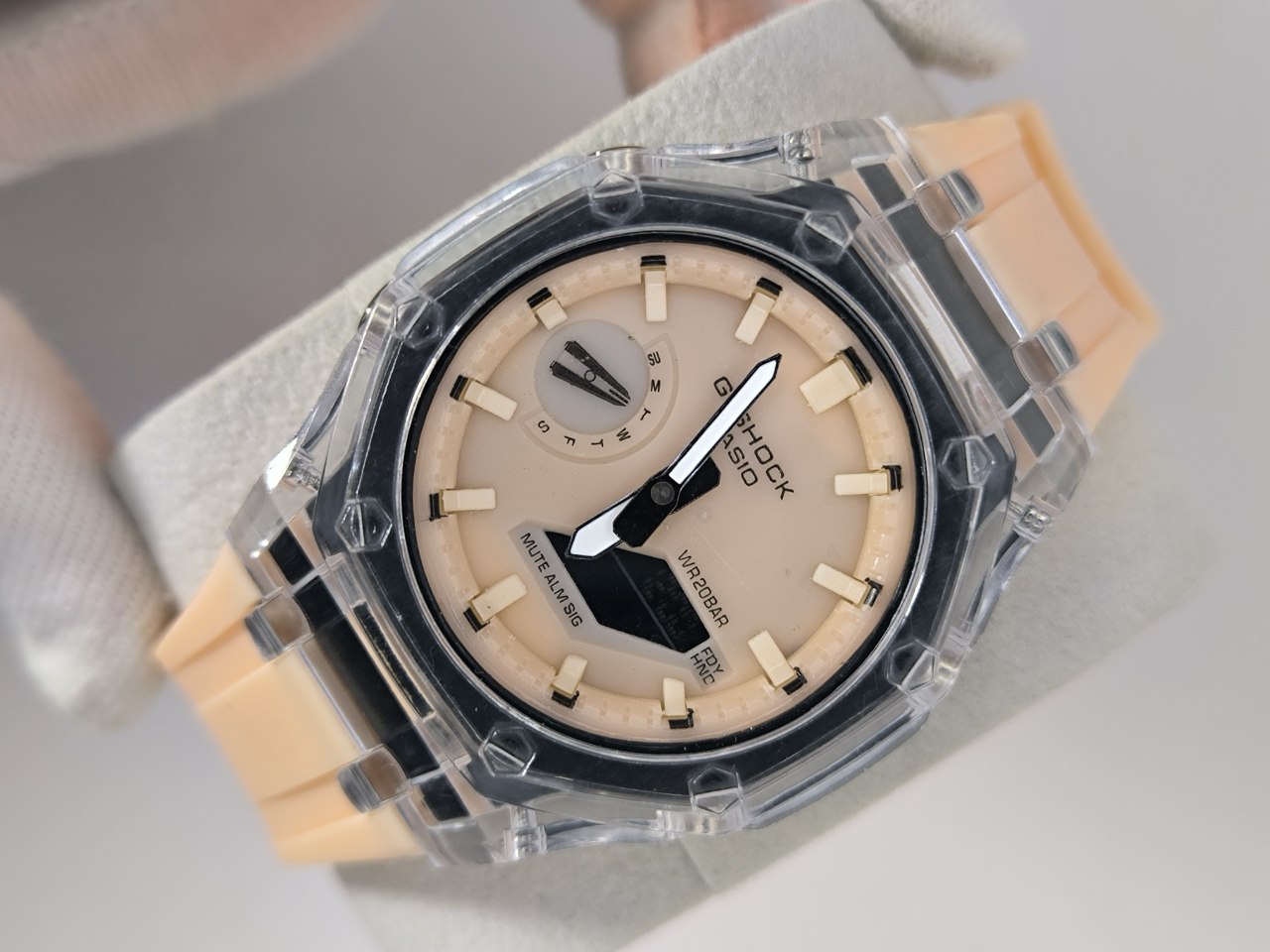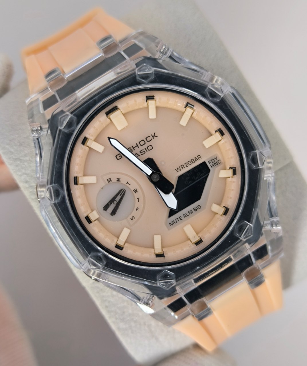ساعت مچی جیشاک Casio G-Shock GA-2100-G3 با بند کرمی و طراحی مقاوم، انتخابی ایدهآل برای استایل اسپرت و روزمره است این مدل اصلی با موتور کوارتز دقیق، نمایش دیجیتال و آنالوگ، چراغ داخلی، ثانیهشمار و تقویم، امکانات کاملی را در اختیار شما میگذارد جنس قاب از رزین مقاوم و بند پیو ضد حساسیت بوده و صفحه مینرال گلس آن کیفیت بالایی دارد این ساعت خاص را میتوانید از فروشگاه اینترنتی روبی مد تهیه کنید و از دوام و زیبایی آن لذت ببرید.