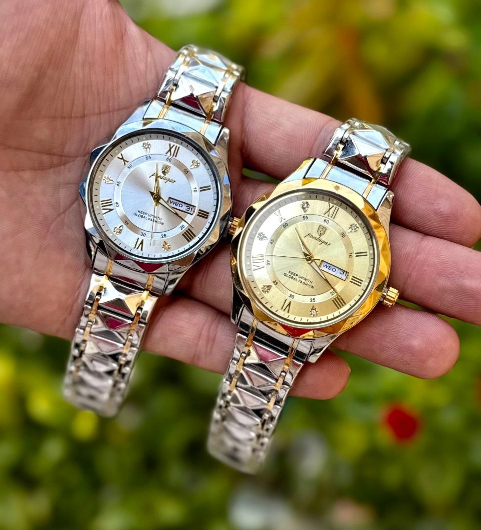 🌈 در دو رنگ بند استیل رگه دار، صفحه طلایی و نقره ای