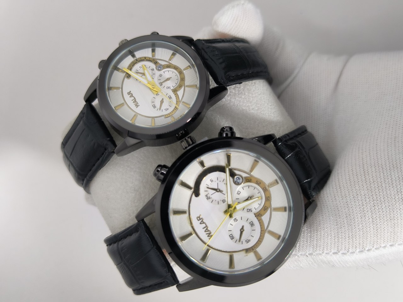 ست ساعت مچی زنانه و مردانه والار WALAR با بند چرمی دور دوخت انتخابی شیک و هماهنگ برای زوجهاییست که به استایل و کیفیت اهمیت میدهند قاب استیل ضخیم با رنگ ثابت و قفل کمربندی مقاوم دوام بالای این مدل را تضمین میکند طراحی سه موتوره با نمایش تاریخ و عقربههای شبنما جلوهای مدرن و کاربردی به ساعت بخشیده است برند شرکتی اصلی و قابلیت ضد آب بودن نیز از دیگر ویژگیهای این ست خاص است برای تهیه این محصول میتوانید به فروشگاه اینترنتی روبی مد مراجعه کنید.