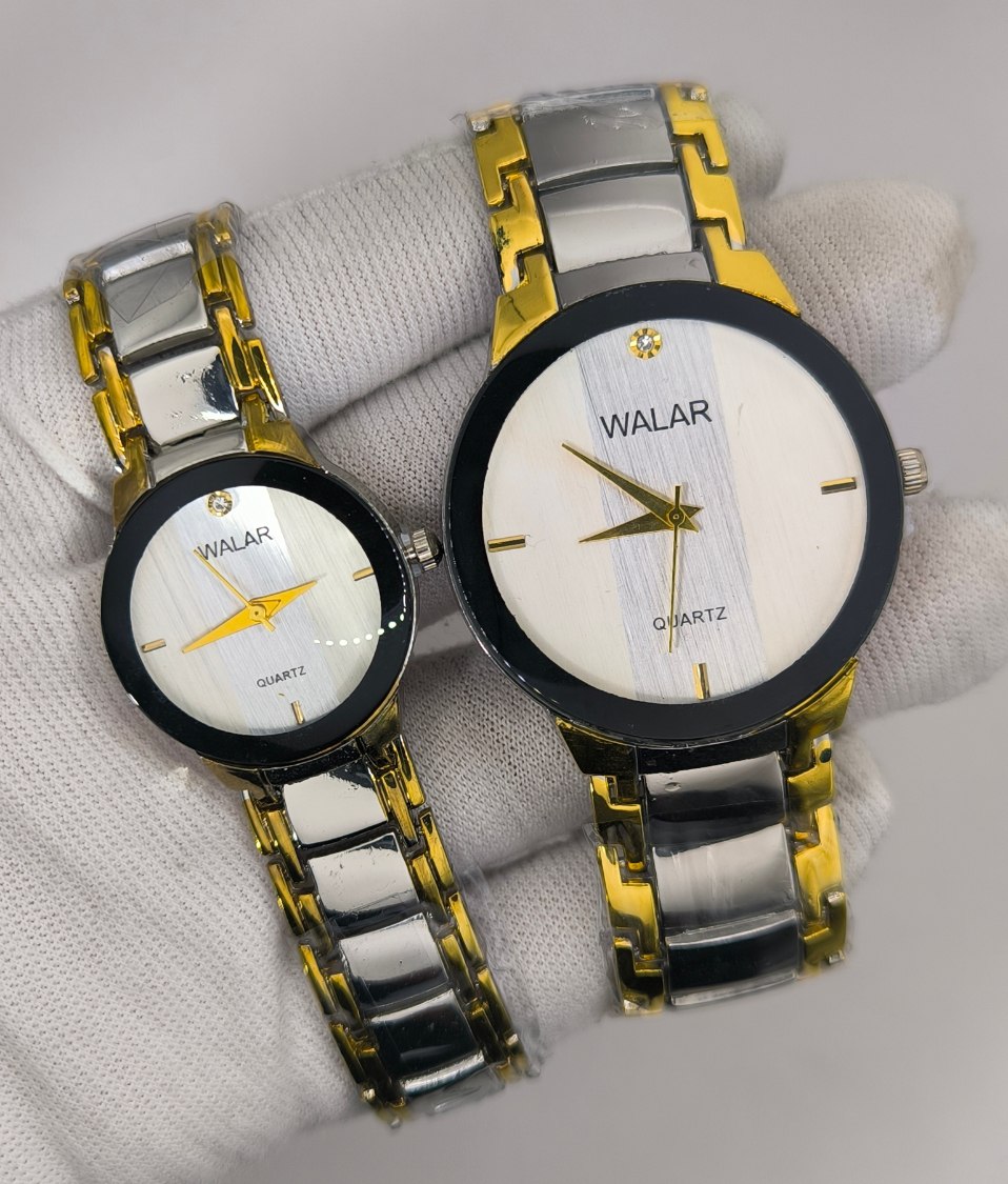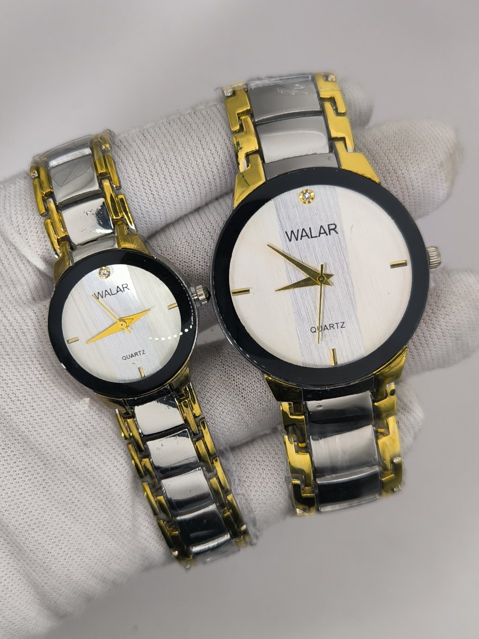ست ساعت مچی زنانه و مردانه اورلیندو ORLANDO طلایی با طراحی صفحه گرد و موتور کوارتز دقیق انتخابی شیک و هماهنگ برای زوجهای خوشسلیقه است این مدل دارای بند رنگ ثابت با صفحه ضد خش قفل مخفی ضامن دار و مقاومت صد درصدی در برابر آب بوده و از طریق فروشگاه اینترنتی روبی مد قابل تهیه است.