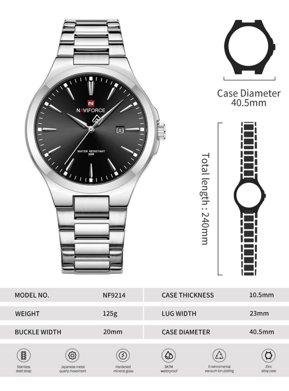 ساعت مچی عقربه ای مردانه نیوی فورس NAVIFORCE مدل Nf9214 استیل