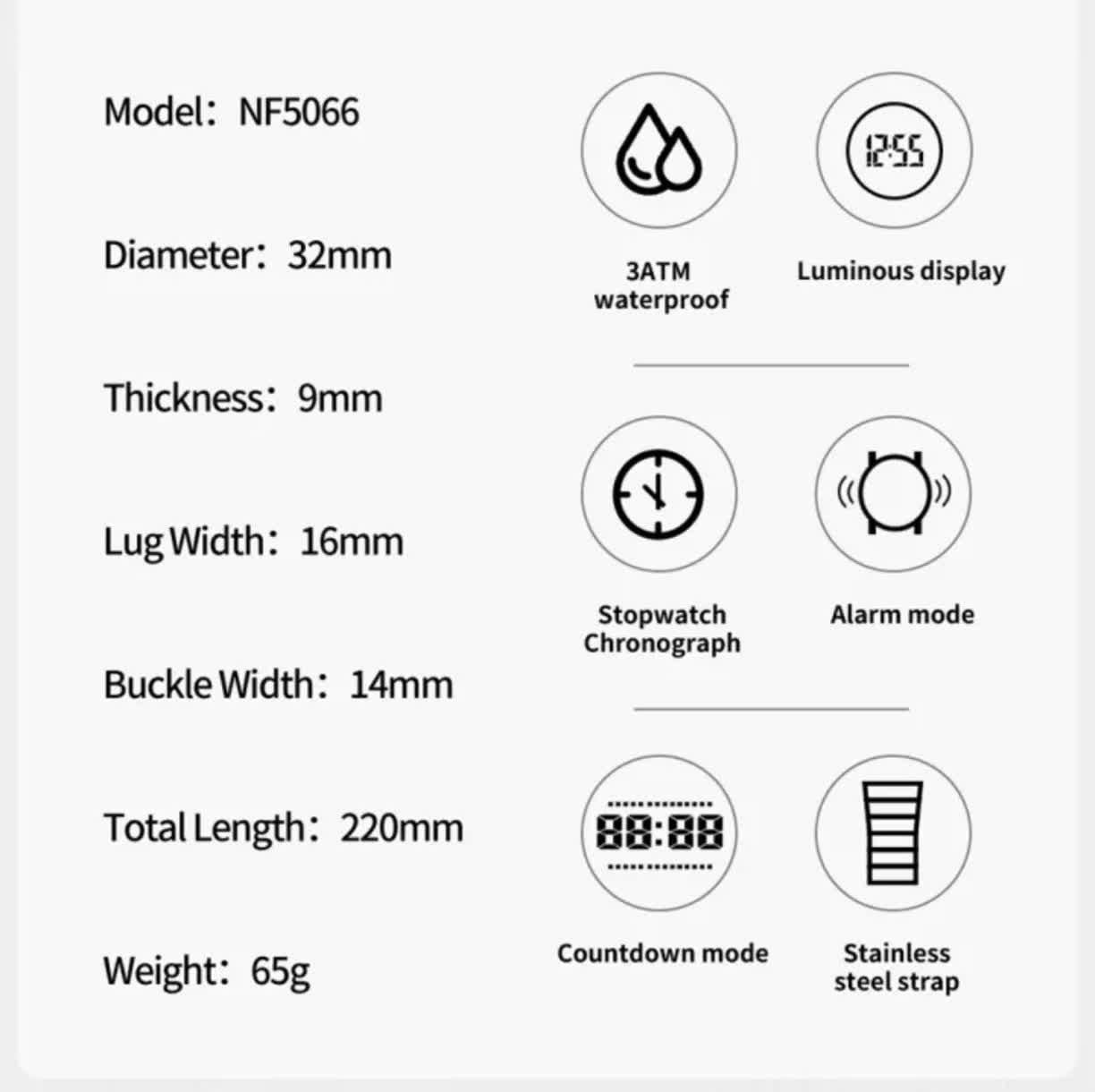 ساعت مچی زنانه دیجیتال نیوی فورس مدل Nf5066 با بند استیل کرکرهای، ترکیبی از طراحی مدرن و امکانات کاربردی است. این ساعت ارجینال با موتور ژوم، شیشه معدنی ضد خش و بند ضد حساسیت پوستی، انتخابی مطمئن برای استفاده روزمره و استایل شهری محسوب میشود. قابلیتهایی مثل کرنومتر، تایمر، تقویم، ثانیهشمار و صفحه چراغدار برای دید در شب، آن را به گزینهای کامل برای بانوان فعال تبدیل کرده است. ضد آب بودن ساعت نیز خیال شما را در شرایط مختلف راحت میکند. این محصول را همراه با کارت گارانتی و جعبه شکیل از فروشگاه اینترنتی روبی مد تهیه کنید.