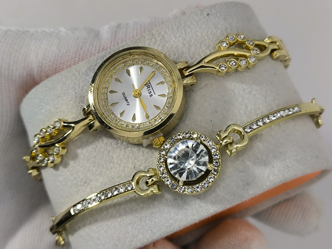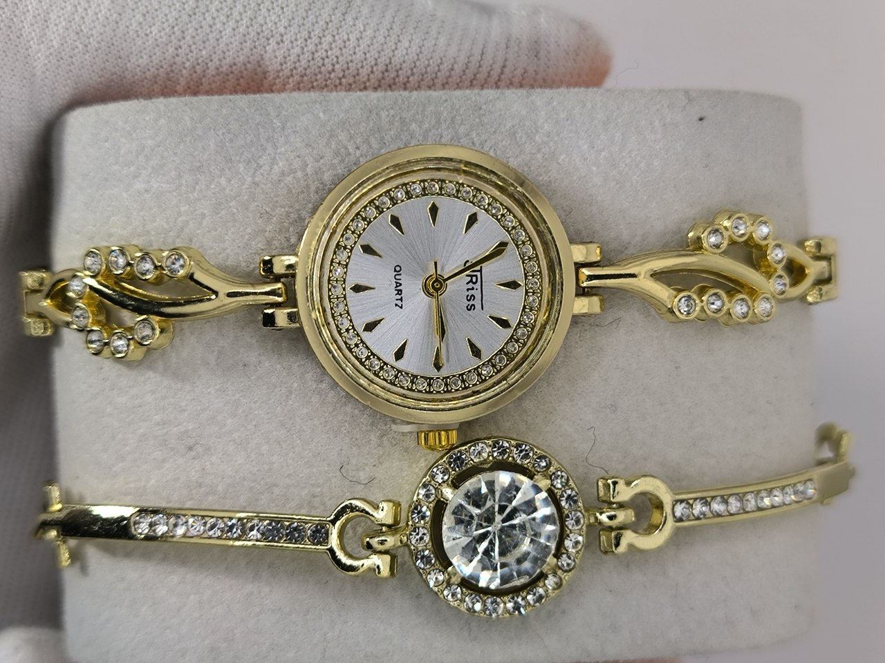 ست ساعت و دستبند دخترانه نگینی کوارتز برند جریس
