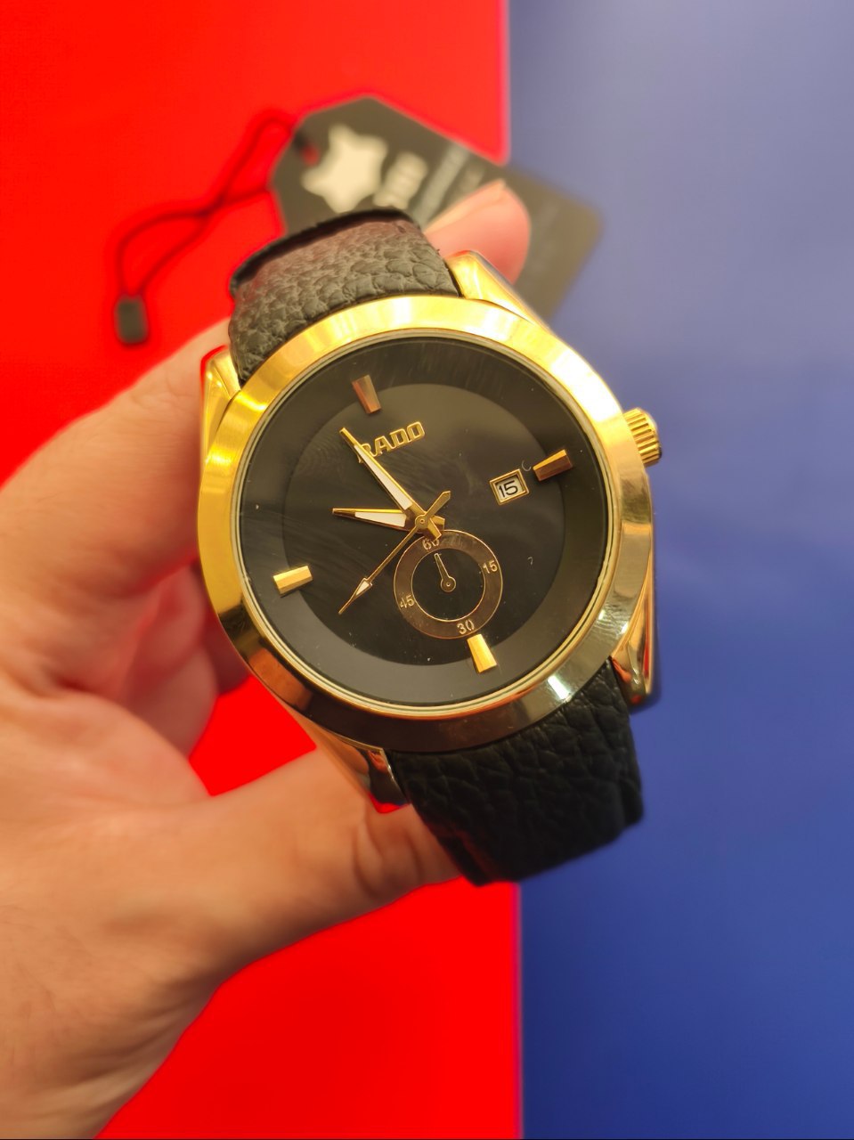 ساعت مچی مردانه RADO با بند چرمی دور دوخت و موتور ژاپنی، انتخابی شیک و بادوام برای آقایان خوشسلیقه است این مدل با طراحی کلاسیک و عقربههای شبنما، علاوه بر زیبایی، کارایی بالایی دارد ضد آب بودن، تقویمدار بودن و قفل کمربندی از دیگر ویژگیهای کاربردی آن است این محصول با ضمانت یکساله از فروشگاه اینترنتی روبی مد عرضه میشود و گزینهای مطمئن برای استفاده روزمره یا هدیهای خاص به شمار میآید.