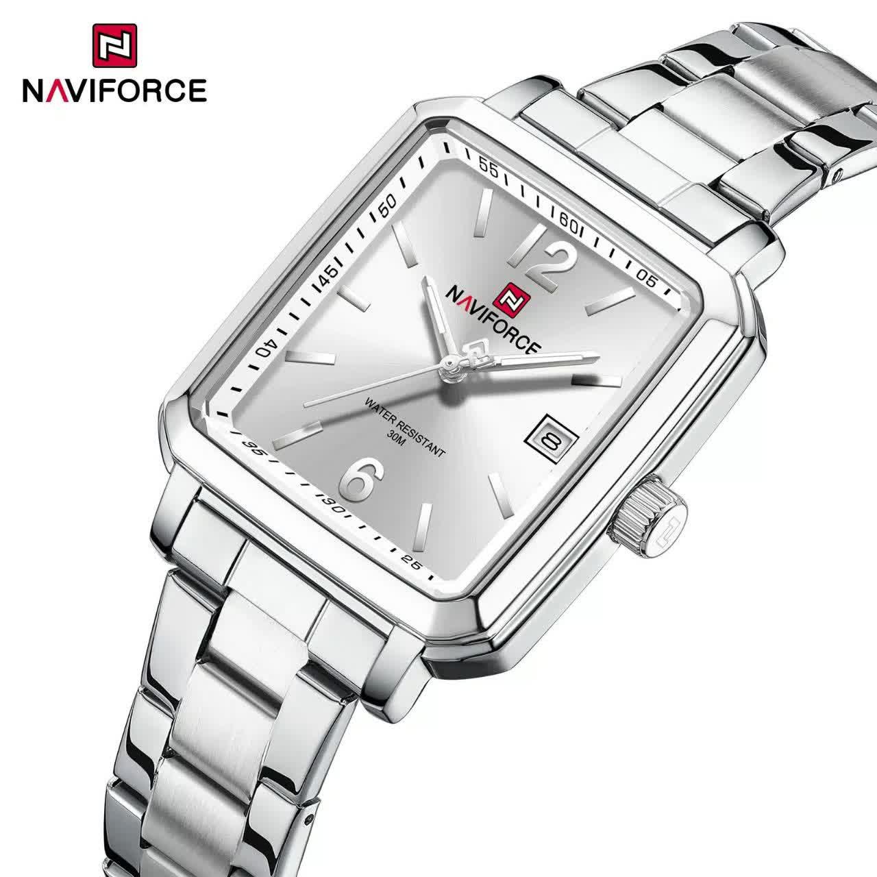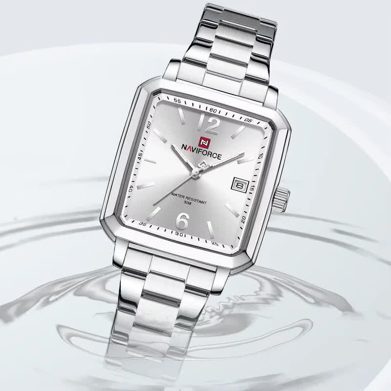 ساعت مچی عقربهای مردانه نیوی فورس NAVIFORCE مدل Nf8023 اورجینال با کارت گارانتی و جعبه عرضه میشود و انتخابی شیک و مطمئن برای آقایان خوشسلیقه است این ساعت با موتور ژاپنی دقیق قاب استیل مقاوم و بند استیل رنگ ثابت ضد حساسیت طراحی شده و دارای صفحه مستطیل خاص با قابلیت شبنما و تقویم روزانه است شیشه معدنی ضد خش دوام بالایی ایجاد کرده و قفل کلیپسی ضامندار امنیت و راحتی بیشتری فراهم میکند قابلیت ضد آب بودن این مدل را به گزینهای مناسب برای استفاده روزمره و رسمی تبدیل کرده است این محصول از طریق فروشگاه اینترنتی روبی مد ارائه میشود.