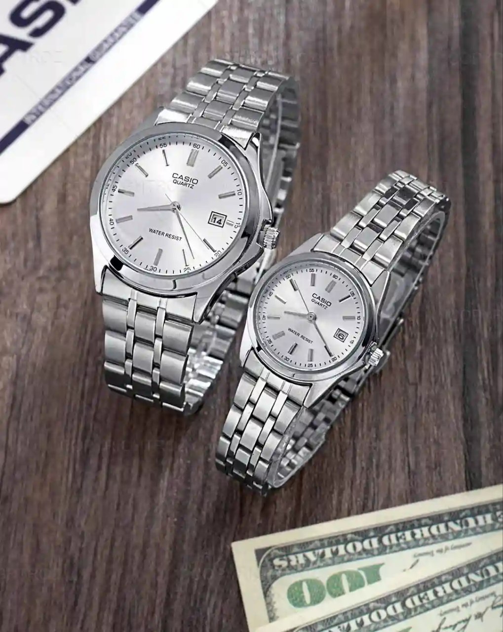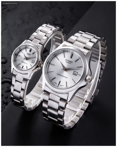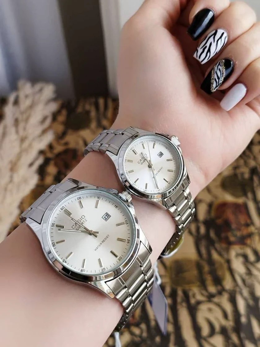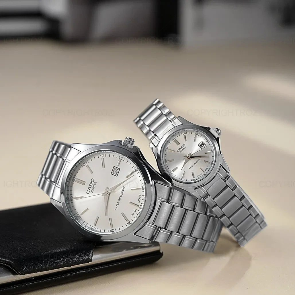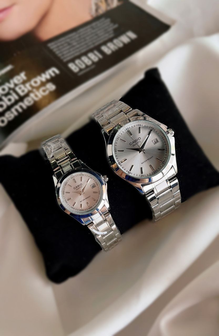 ست ساعت مچی زنانه و مردانه کاسیو CASIO انتخابی خاص برای زوج هایی است که به سبک کلاسیک و کیفیت سفارشی اهمیت میدهند این ست با بند استیل مقاوم و رنگ سیلور طراحی شده و دارای قفل کلیپسی راحت و ایمن است موتور کوارتز دقیق و قابلیت روز شمار آن کارایی روزمره را کامل میکند همچنین مقاومت در برابر آب خیال شما را آسوده میسازد فروشگاه اینترنتی روبی مد این ست کلاسیک را به عنوان گزینه ای شیک و کاربردی برای استایل هماهنگ شما پیشنهاد میکند.