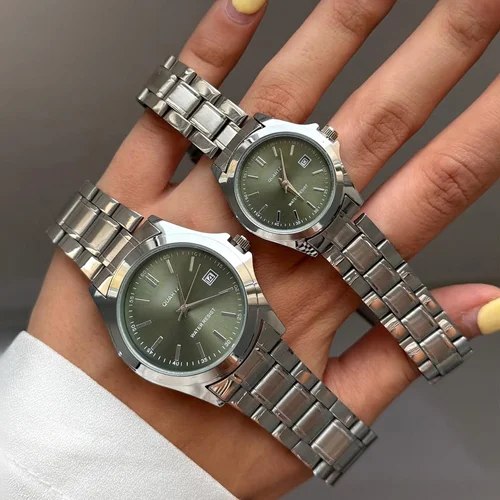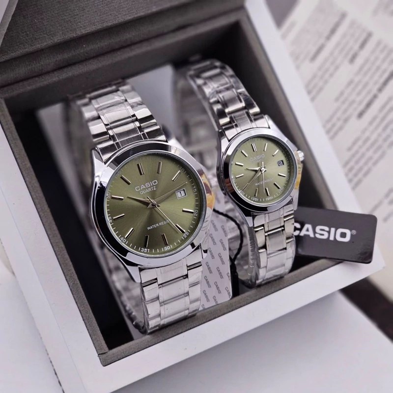 ست ساعت مچی زنانه و مردانه کاسیو CASIO صفحه سبز زیتونی
