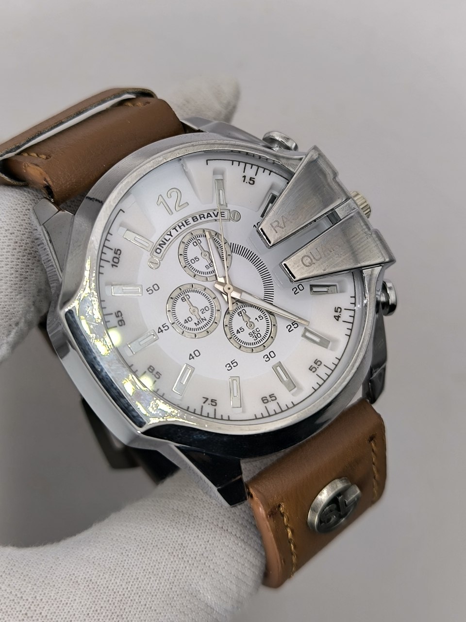 ساعت مچی مردانه دیزل DIESEL شاخدار بند چرمی موتور کوارتز