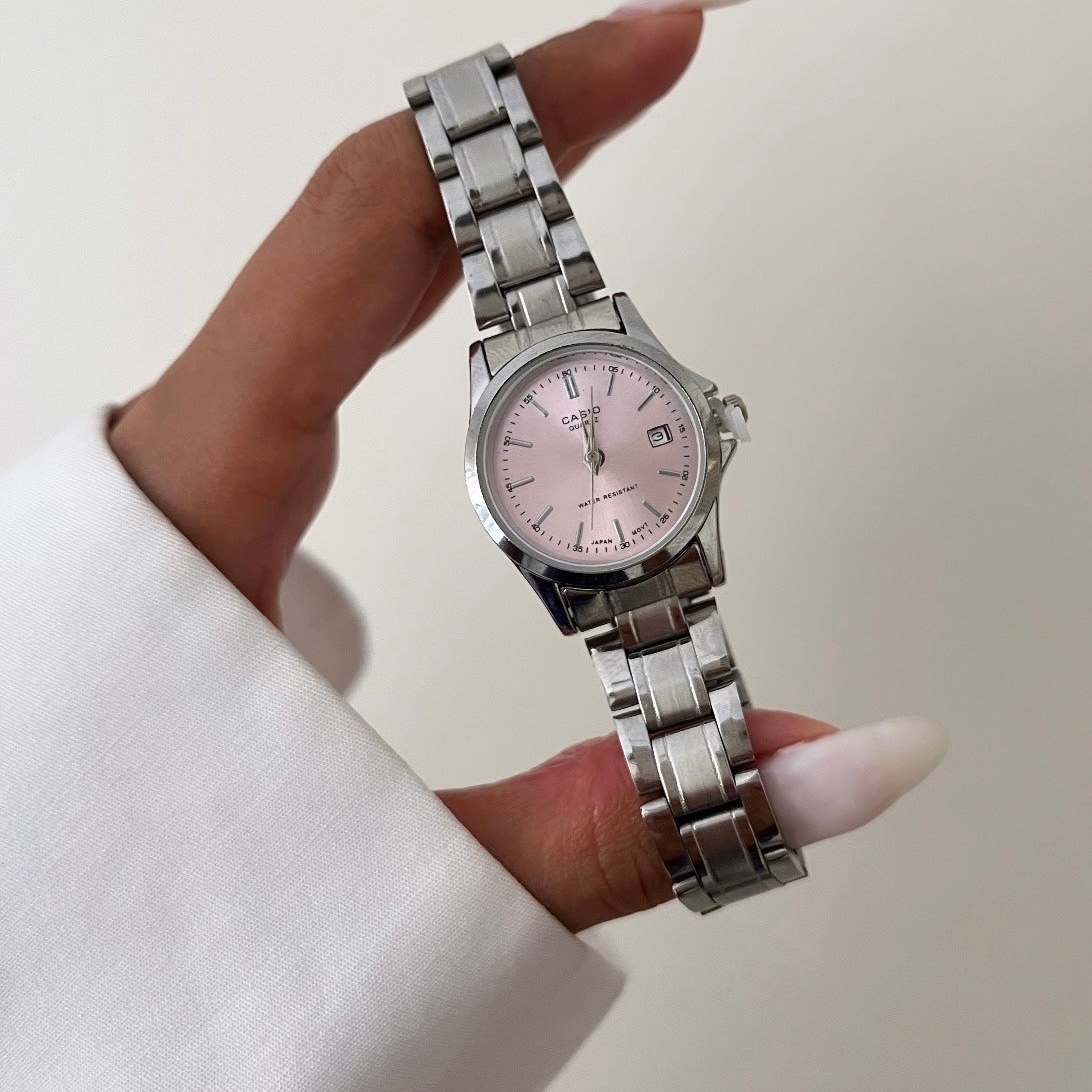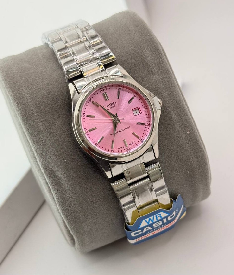 ساعت مچی عقربه ای زنانه کاسیو CASIO صفحه صورتی موتور ژاپن