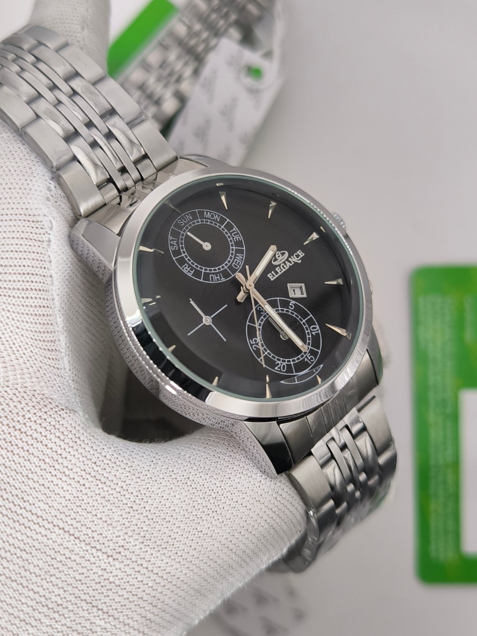 ست ساعت مچی زنانه و مردانه الگانس ELEGANCE با طراحی استیل لوکس و کیفیتی بینظیر انتخابی خاص برای زوجهای خوشسلیقه است این محصول با برند اصلی الگانس و ضمانت یک ساله عرضه میشود بند استیل توپُر با آبکاری عالییییی و قفل کلیپسی دوام و زیبایی را تضمین میکند فرم صفحه گرد با طرح سه موتور و قابلیت تقویم دار همراه با عقربه شبنما کارایی و جذابیت بیشتری ایجاد کرده است این ساعت ضد آب بوده و با تضمین رنگ و کیفیت خیال شما را راحت میسازد خرید این ست خاص از فروشگاه اینترنتی روبی مد تجربهای مطمئن و ارزشمند خواهد بود.