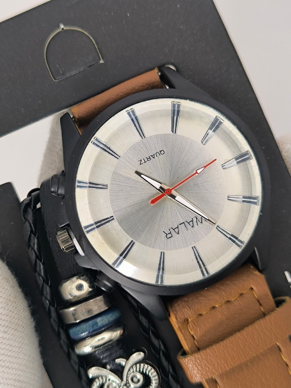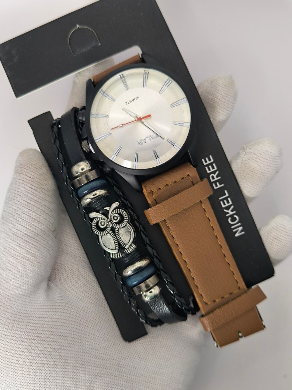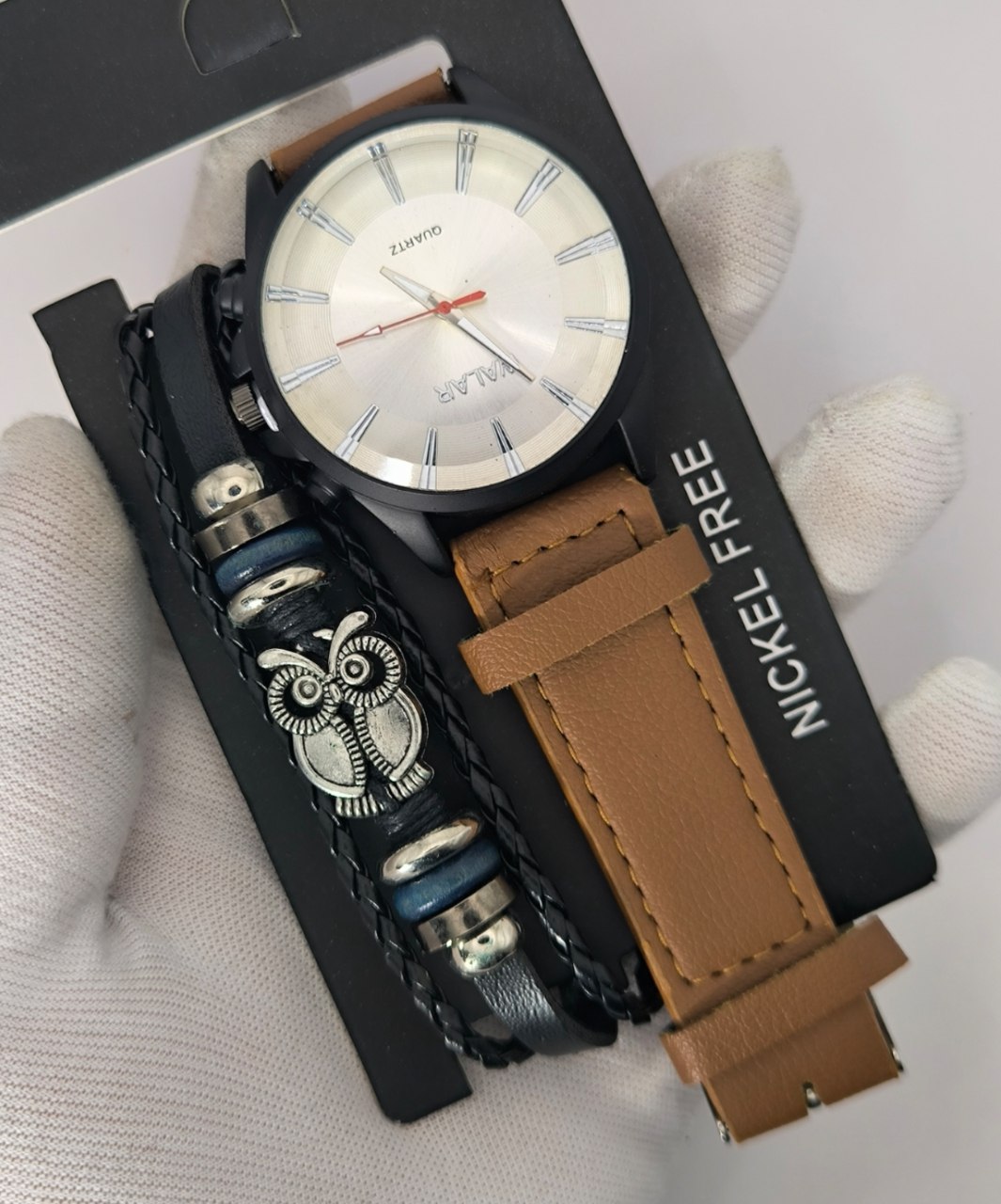 ست ساعت مچی و دستبند چرمی مردانه برند والار +رنگبندی
