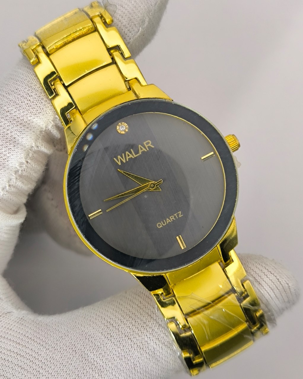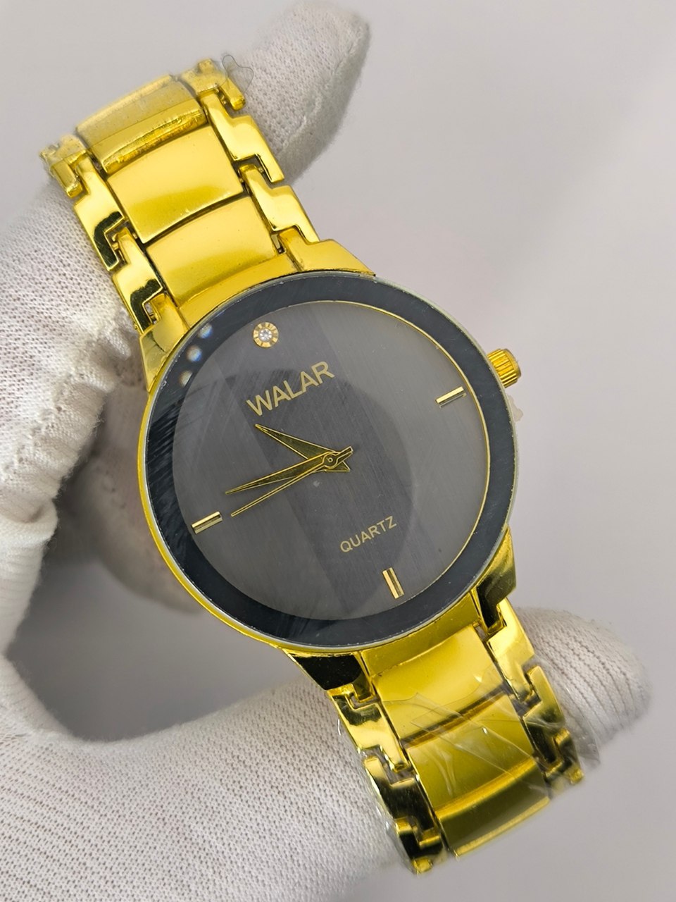 ساعت مچی مردانه برند والار WALAR با بند سرامیکی طلایی انتخابی لوکس و خاص برای آقایان خوشاستایل است این مدل با بند استیل سرامیکی رنگ ثابت و قفل کلیپسی طراحی شده تا هم دوام بالا داشته باشد و هم استفاده راحتی را فراهم کند صفحه ساده دایرهای آن جلوهای کلاسیک و شیک ایجاد کرده و قابلیت ضد آب بودن باعث شده تا در استفاده روزمره نیز مطمئن و کاربردی باشد این محصول برند شرکتی و اصلی بوده و با تضمین کیفیت از طریق فروشگاه اینترنتی روبی مد عرضه میشود انتخابی مناسب برای کسانی که به دنبال ترکیب زیبایی و ماندگاری هستند.