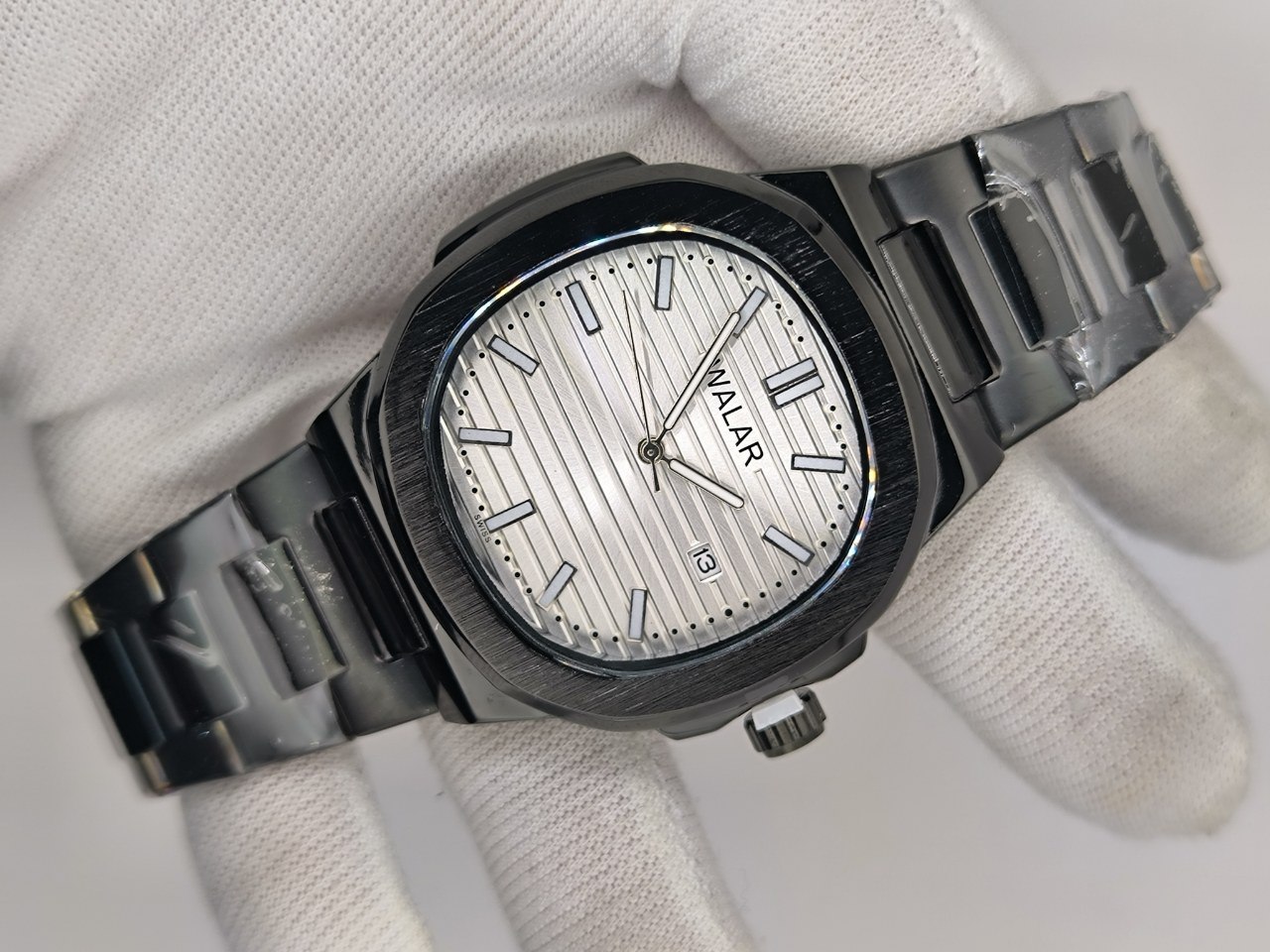 ساعت مچی مردانه پتک فیلیپ از برند والار WALAR سیلور با طراحی چند ضلعی و بند استیل رنگ ثابت انتخابی شیک و ماندگار است این ساعت با برند شرکتی ارجینال و قفل پروانهای مخفی همراه با بند توپور سنگین بینظیر جلوهای خاص دارد قابلیت ضدآب و تقویم دار بودن آن کارایی روزمره را کامل میکند و تضمین رنگ و کیفیت ارزش خرید آن را دوچندان میسازد برای تهیه این محصول میتوانید به فروشگاه اینترنتی روبی مد مراجعه کنید.
