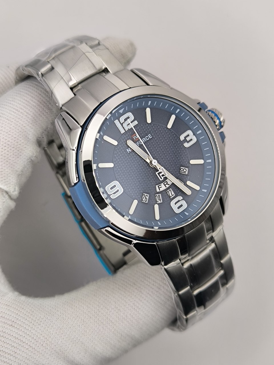 ساعت مچی مردانه نیوی فورس مدل Nf9215s با طراحی کلاسیک و فرم صفحه دایرهای انتخابی شیک و مقاوم برای استفاده روزمره و رسمی است این مدل اورجینال همراه با جعبه و کارت گارانتی معتبر از فروشگاه اینترنتی روبی مد عرضه میشود دارای موتور ژاپنی دقیق تقویم روزشمار عقربههای شبتاب و قاب استیل ضد ضربه است بند استیل توپُر با رنگ ثابت و ضد حساسیت پوستی در کنار قفل کلیپسی ضامندار راحتی و دوام را تضمین میکند همچنین شیشه معدنی ضد خش و مقاومت در برابر آب این ساعت را به گزینهای مطمئن و کاربردی تبدیل کرده است.