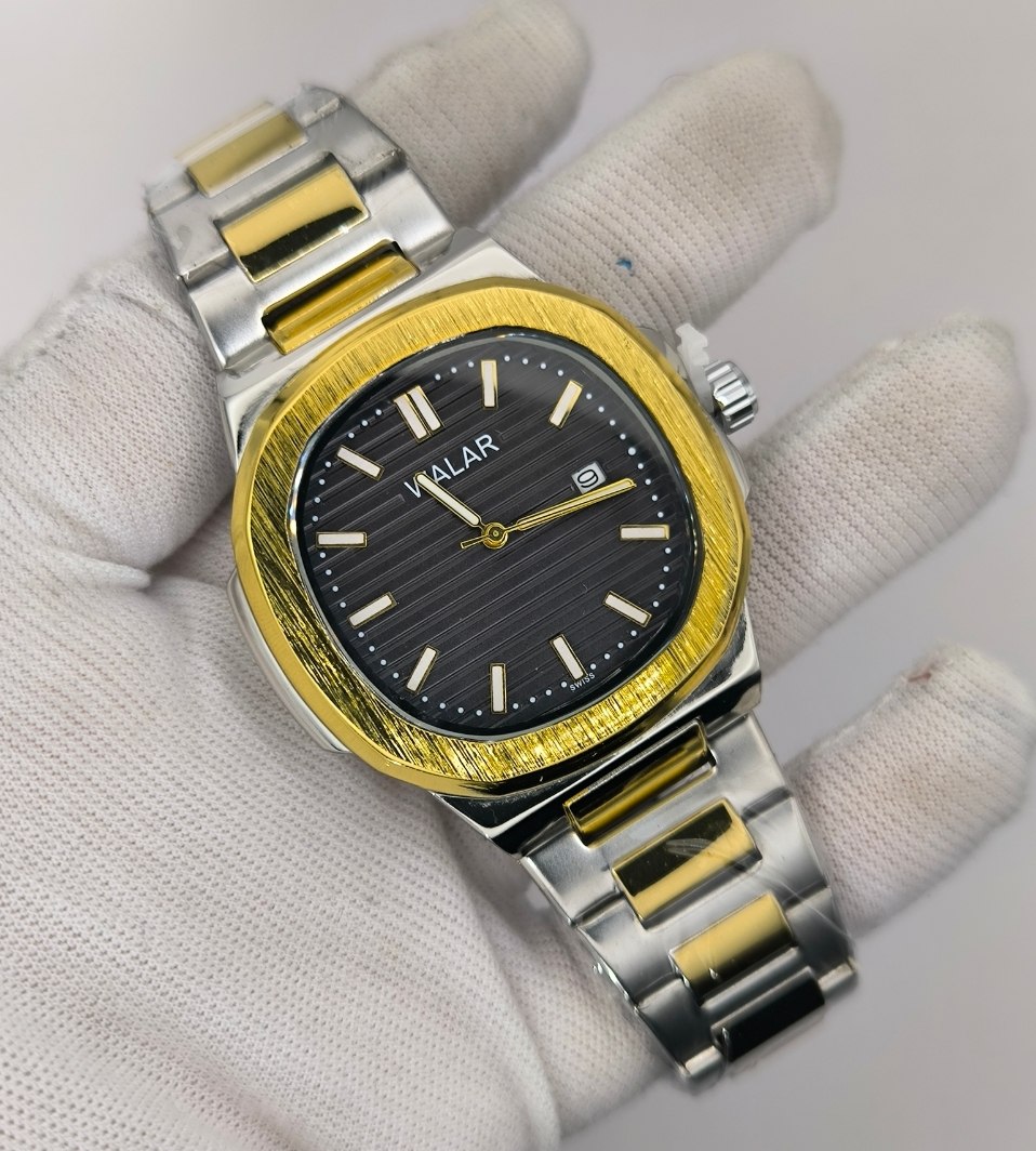 ساعت مچی مردانه پتک فیلیپ از برند والار WALAR با طراحی برند شرکتی ارجینال و فرم صفحه چند ضلعی انتخابی لوکس و خاص برای آقایان است این ساعت با بند استیل رنگ ثابت و بند توپور سنگین بینظیر جلوهای شیک و ماندگار دارد قفل پروانه ای مخفی استفاده را راحت و ایمن میکند و قابلیت ضد آب به همراه تقویم روزانه آن را کاربردیتر ساخته است ساعت مردانه والار پتک فیلیپ را همین حالا از فروشگاه اینترنتی روبی مد تهیه کنید.