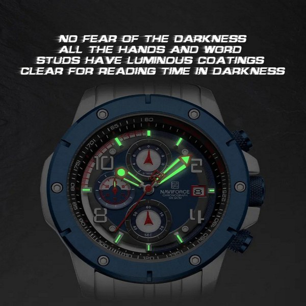 ساعت مچی کرنوگراف مردانه نیوی فورس NAVIFORCE مدل Nf8056 صفحه آبی