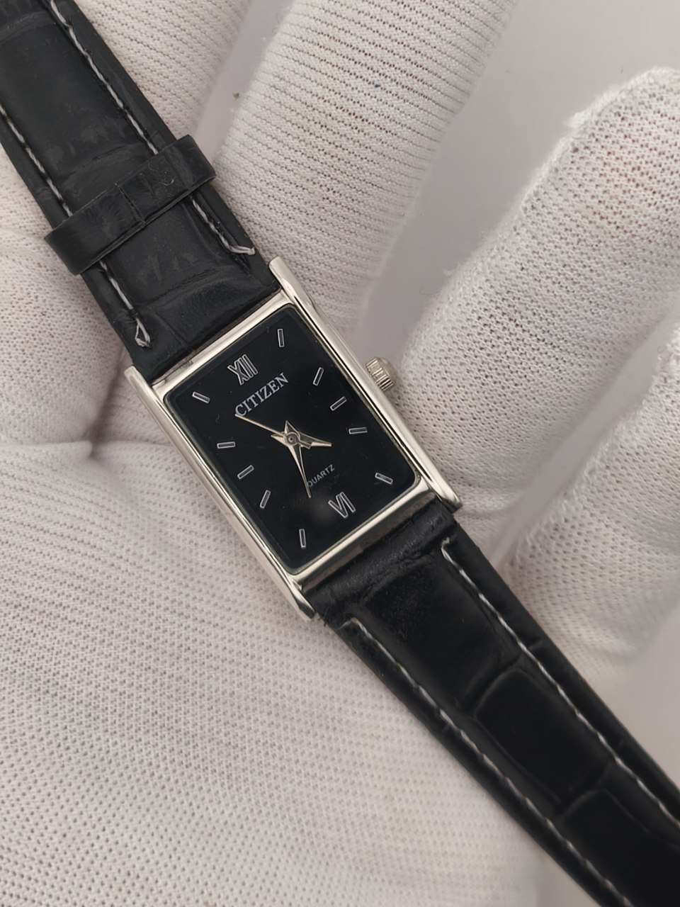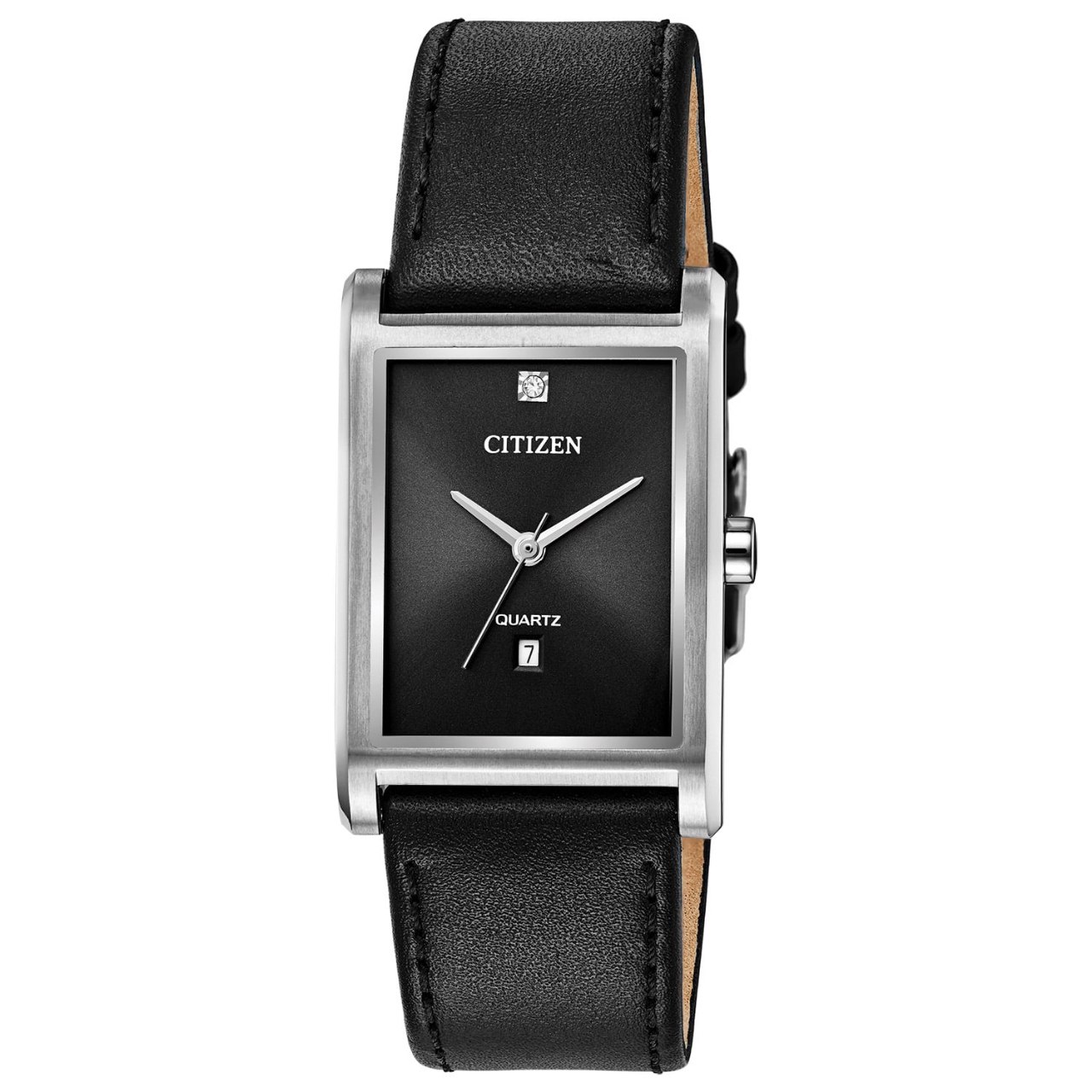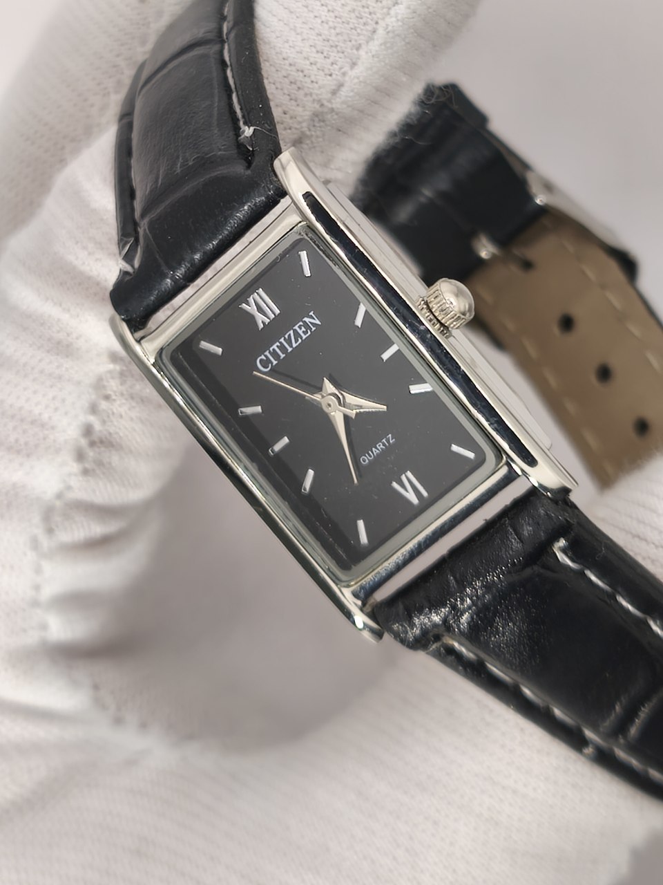 ساعت مچی زنانه صفحه مستطیل سیتیزن CITIZEN بند چرمی صفحه مشکی