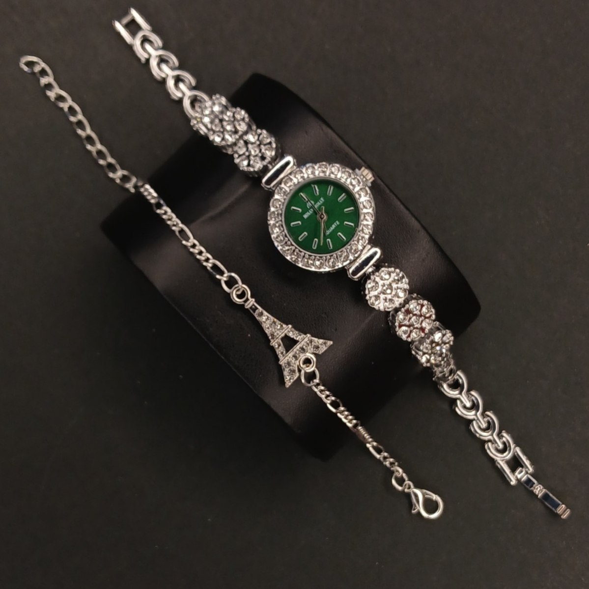 ست ساعت و دستبند دخترانه نگینی برند هولی مولی طرح ایفل