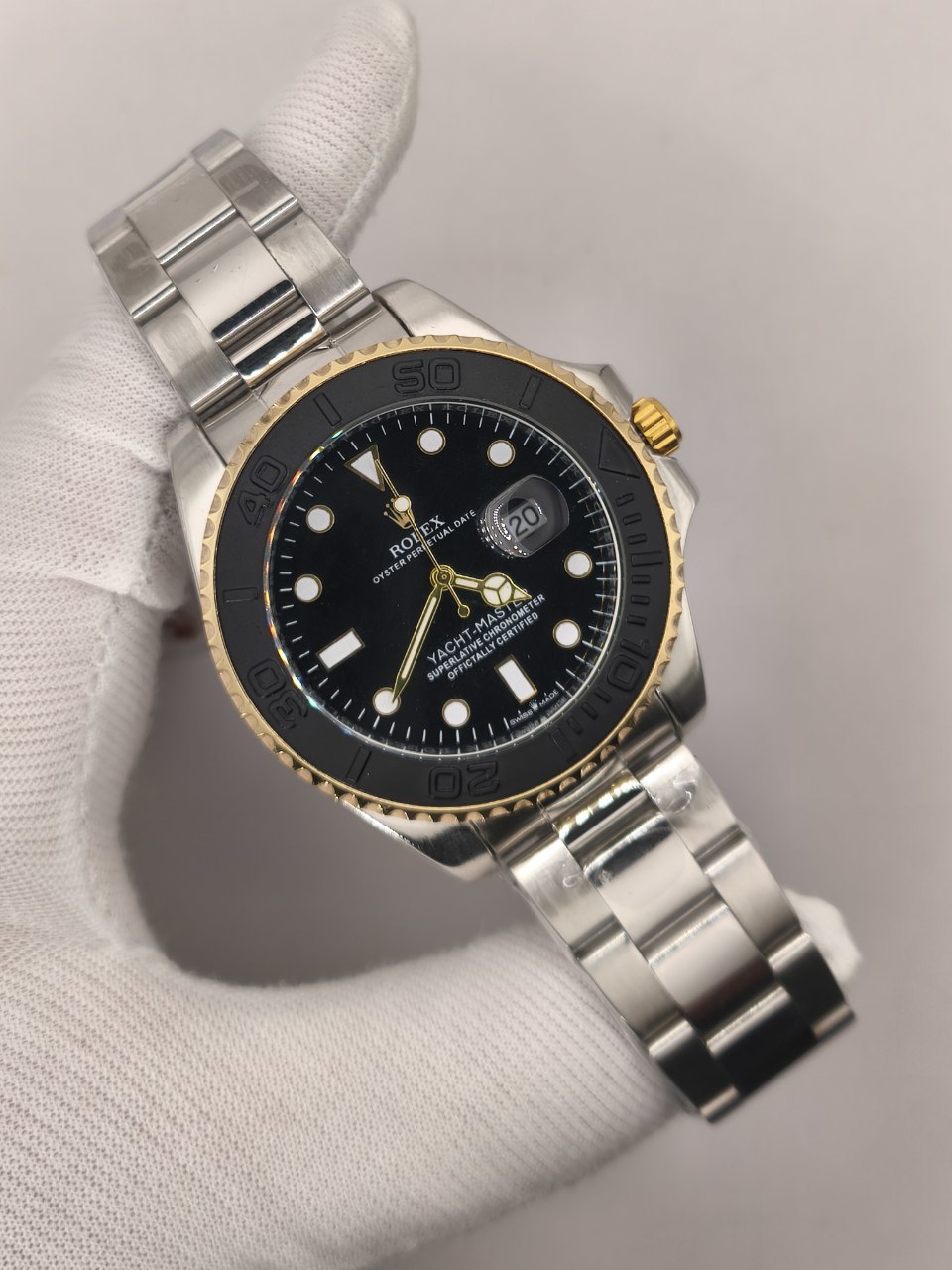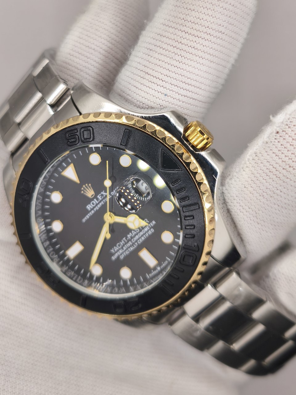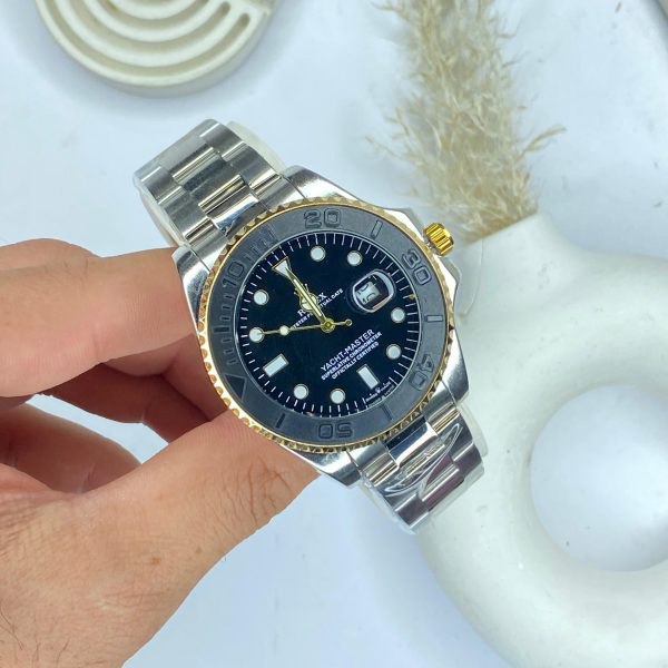 ساعت مچی مردانه رولکس یاخ مستر میوتا ROLEX تاچمتر دار انتخابی لوکس و خاص برای آقایان شیک پوش است این مدل با طراحی منحصر به فرد و کیفیت بالا عرضه میشود و مجهز به تقویم روزانه و روزشمار بوده و عقربههای شب نما خوانایی ساعت را در تاریکی آسان میسازد بند استیل رنگ ثابت و ضد زنگ همراه با قفل رولکسی دو قفل امنیت و دوام بیشتری فراهم میکند شیشه کریستال مقاوم و قابلیت تلسکوپی جلوهای مدرن به این ساعت داده و سرکوب رولکس اصالت طراحی را کامل میکند این ساعت با تاچیمتر دقیق برای کسانی که به جزئیات اهمیت میدهند گزینهای عالی است برای خرید این محصول به فروشگاه اینترنتی روبی مد مراجعه کنید.