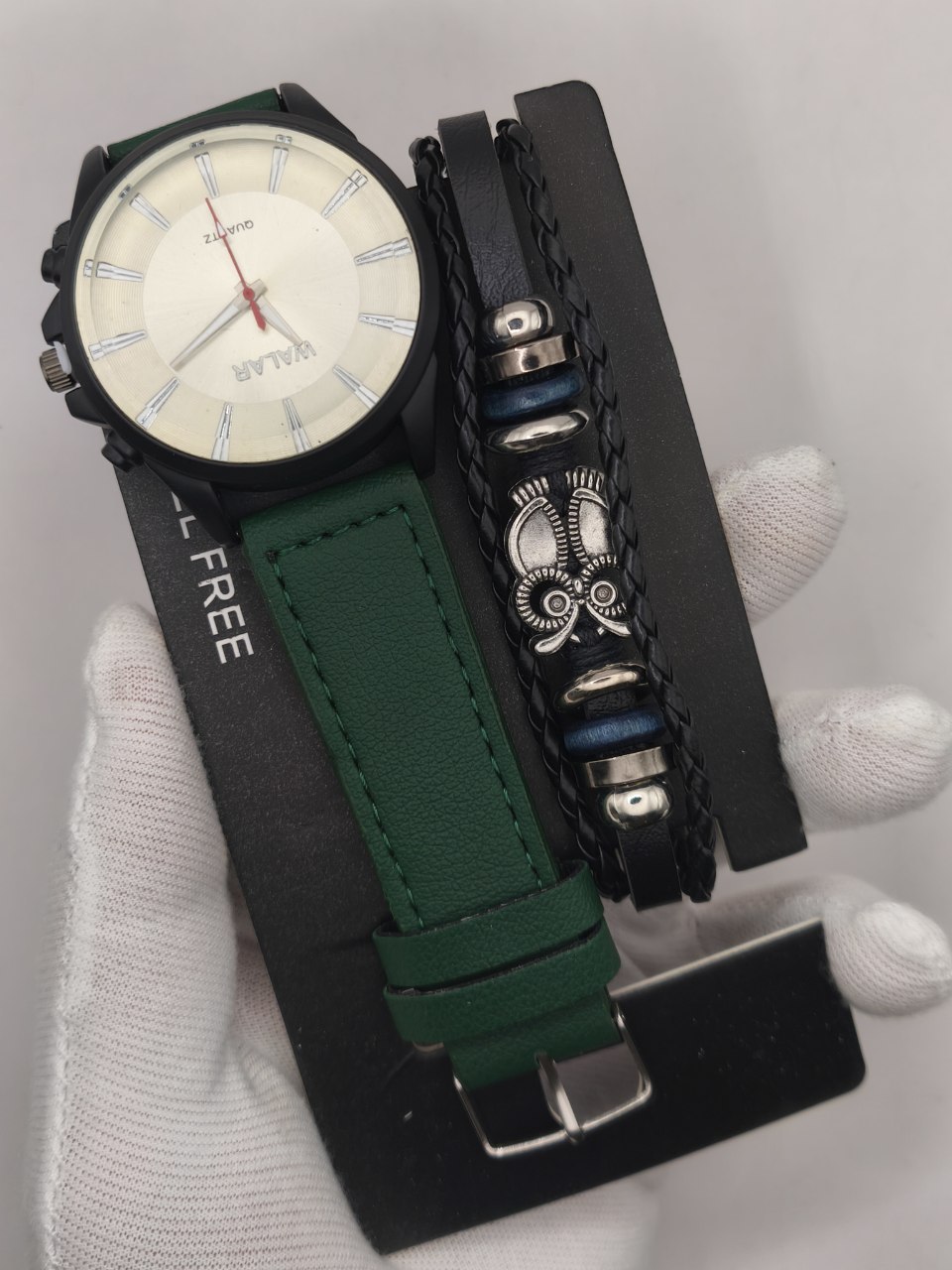 ست ساعت مچی و دستبند چرمی مردانه برند والار +رنگبندی