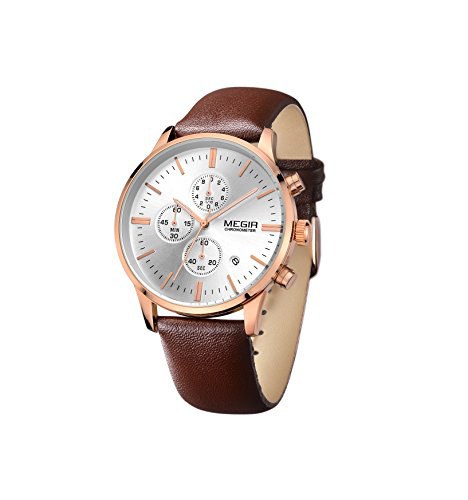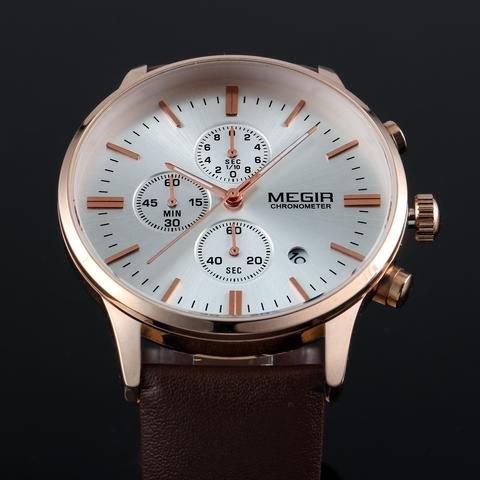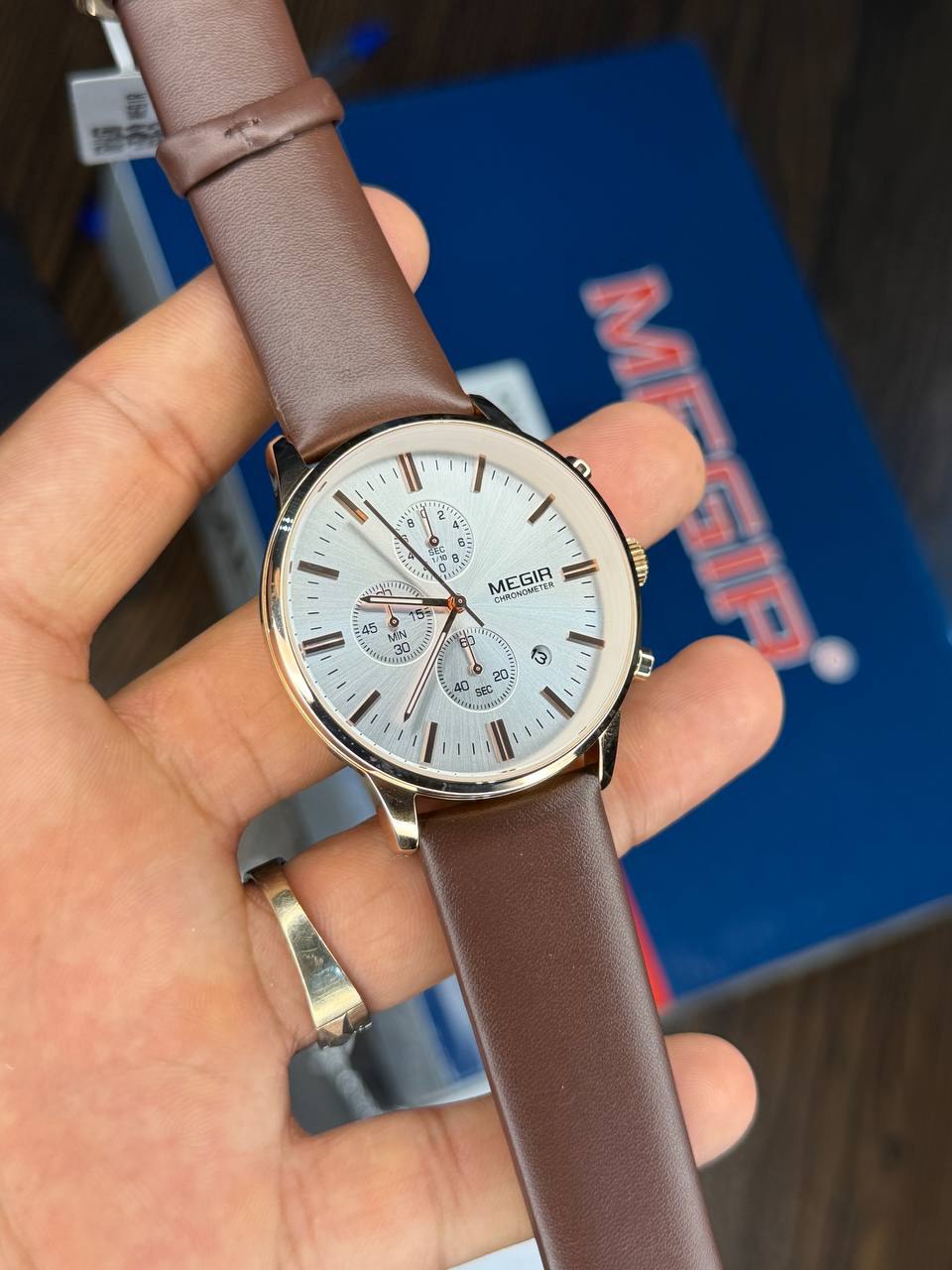 ساعت مچی کرنوگراف سه موتوره مردانه مگیر Megir مدل ML2011GBN-1 بند چرمی با طراحی کلاسیک و موتور کوارتز ژاپن انتخابی دقیق و شیک برای آقایان است این محصول اورجینال به همراه کارت ضمانت vip جعبه و دفترچه عرضه میشود قاب استیل مقاوم و شیشه معدنی ضد خش دوام بالایی دارد و عقربههای شب تاب خوانایی ساعت را در تاریکی آسان میکند بند چرمی اصل ضد حساسیت پوستی با قفل کمربندی سوزنی راحتی و امنیت استفاده را فراهم میآورد فرم صفحه دایرهای شکل همراه با قابلیت تقویم و سه موتوره کرنوگراف جلوهای حرفهای و کاربردی به این ساعت بخشیده است برای خرید به فروشگاه اینترنتی روبی مد مراجعه کنید.