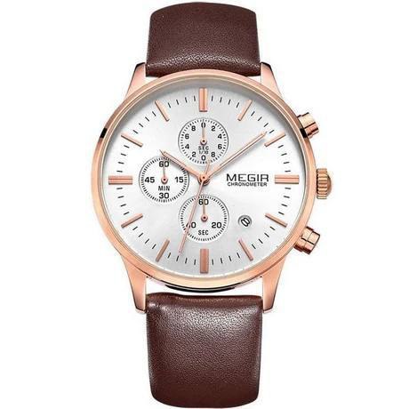 ساعت مچی کرنوگراف سه موتوره مردانه مگیر Megir مدل ML2011GBN-7N0 بند چرمی