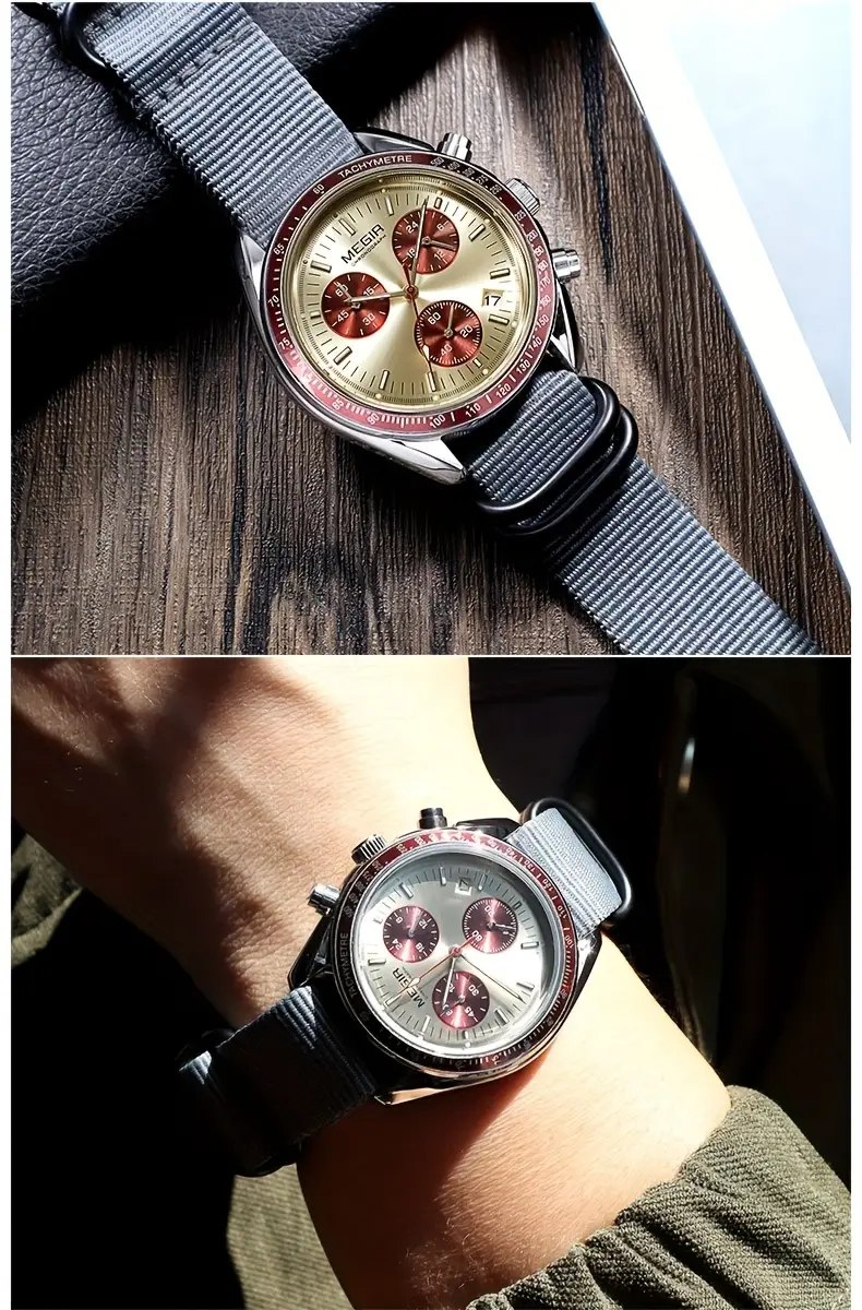 ساعت مچی کرنوگراف سه موتوره مردانه مگیر Megir مدل ML2247GBR-13N6 بند برزنتی