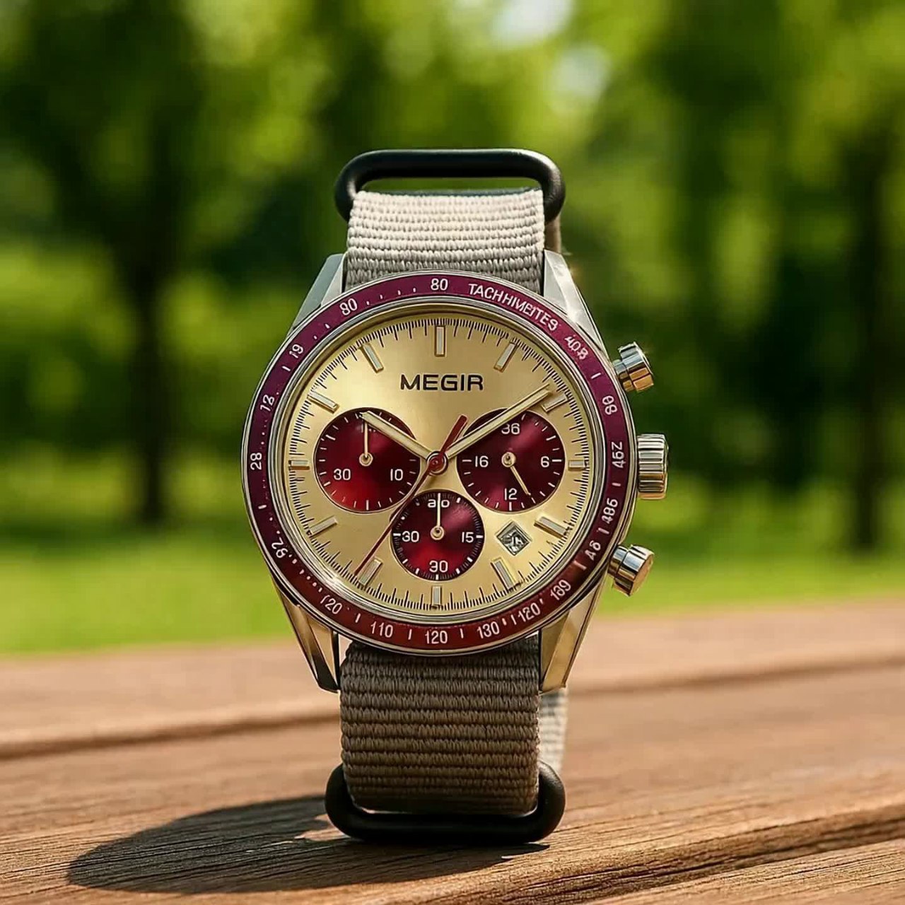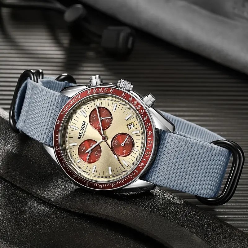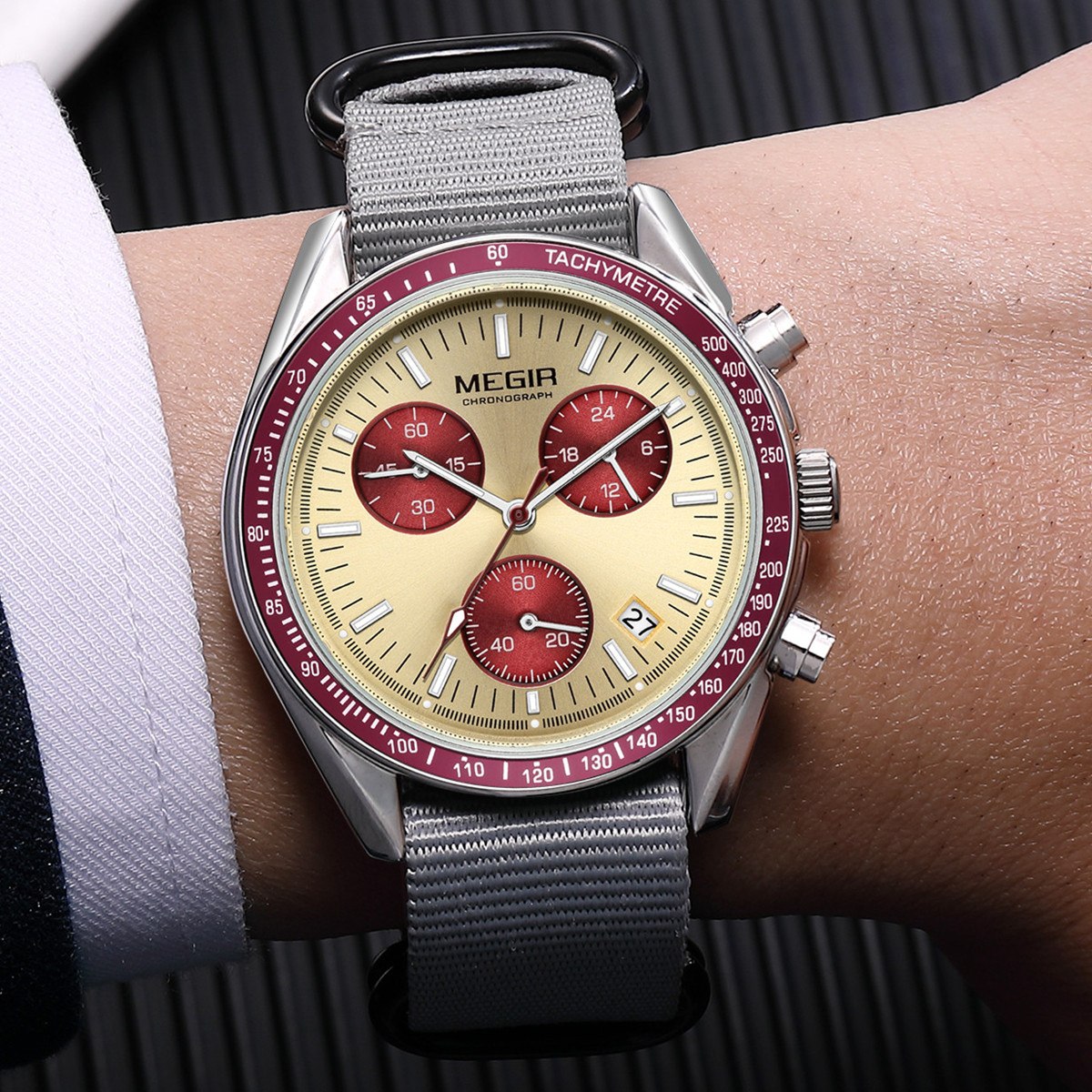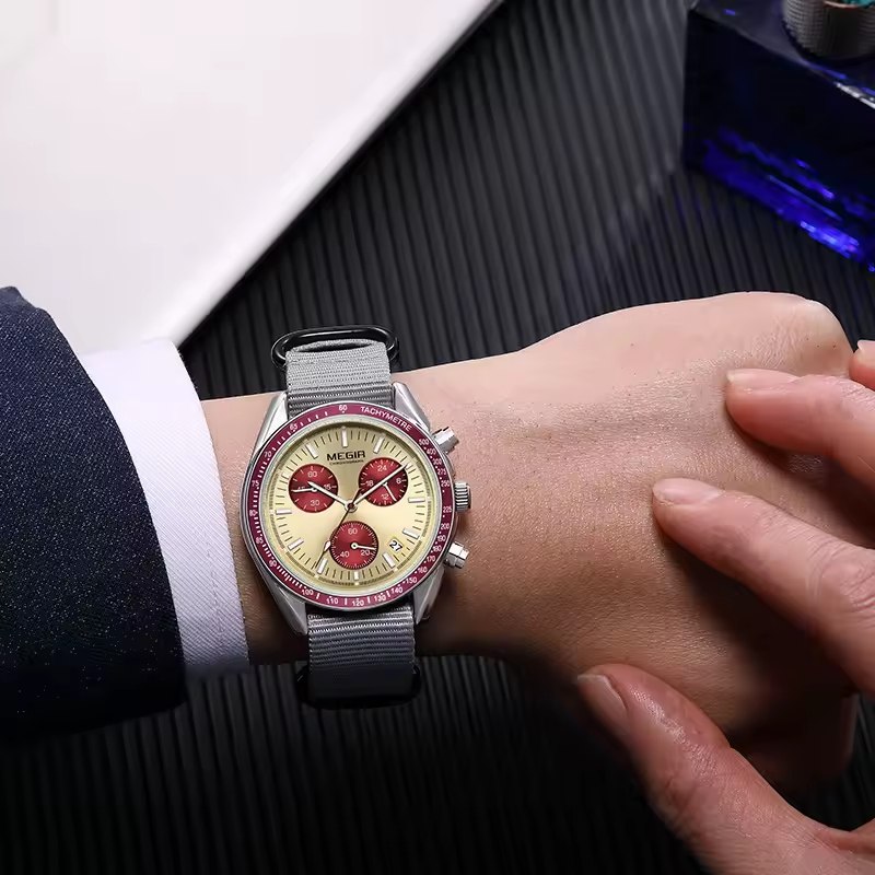 ساعت مچی کرنوگراف سه موتوره مردانه مگیر Megir مدل ML2247GBR-13N6 بند برزنتی با طراحی اسپرت و موتور کوارتز ژاپن انتخابی دقیق و شیک برای آقایان است این محصول اورجینال به همراه کارت ضمانت vip جعبه و دفترچه عرضه میشود قاب استیل مقاوم و شیشه معدنی ضد خش دوام بالایی دارد و عقربههای شب تاب خوانایی ساعت را در تاریکی آسان میکند بند برزنتی باکیفیت ضد حساسیت پوستی با قفل کمربندی سوزنی راحتی و امنیت استفاده را فراهم میآورد فرم صفحه دایرهای شکل همراه با قابلیت تقویم و سه موتوره کرنوگراف جلوهای حرفهای و کاربردی به این ساعت بخشیده است برای خرید به فروشگاه اینترنتی روبی مد مراجعه کنید.