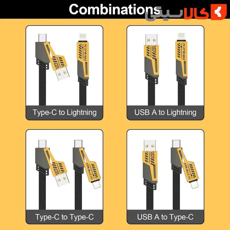 کابل چهار کاره یک سو USB و تایپ سی یک سو تایپ سی به آیفون مدل 4IN1 FAST طول 1.2 متر