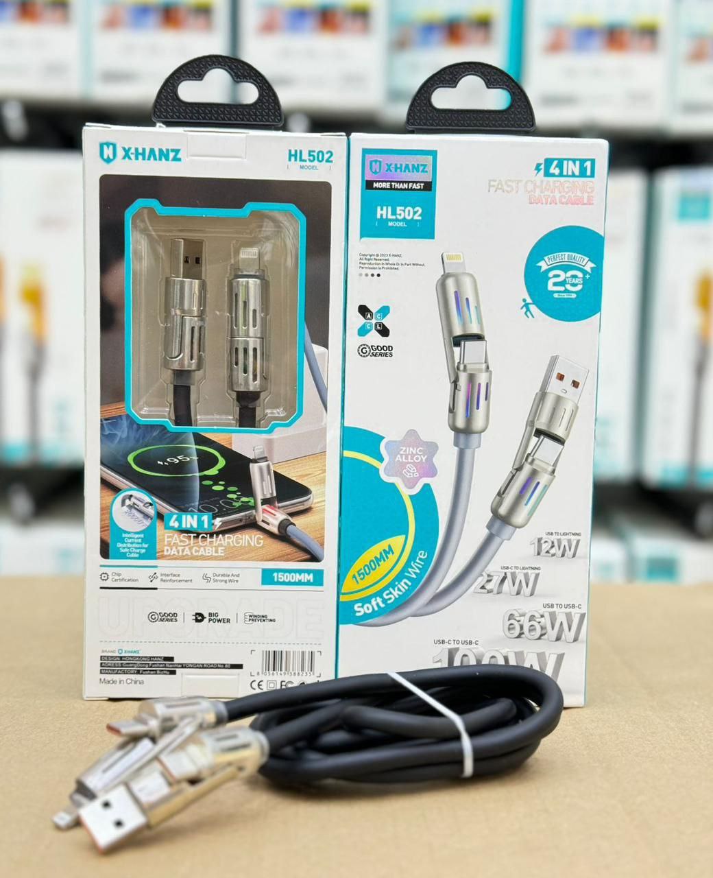 کابل شارژ 4 حالته آیفون و تایپسی x-hanz مدل hl502