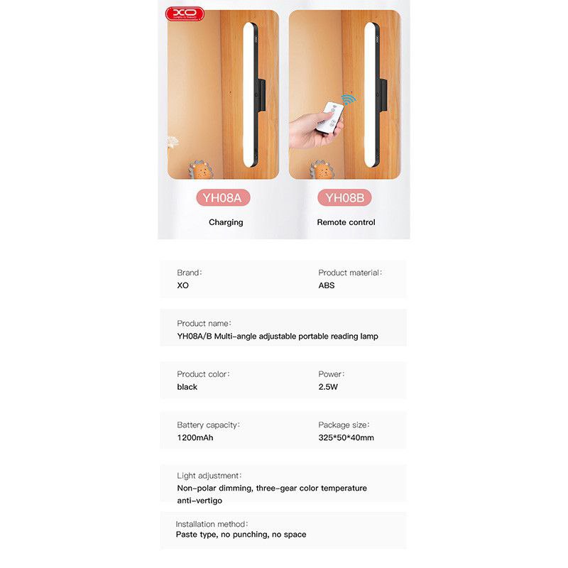 چراغ مطالعه ایکس او مگنت دار با کنترل مدل XO-YH08B