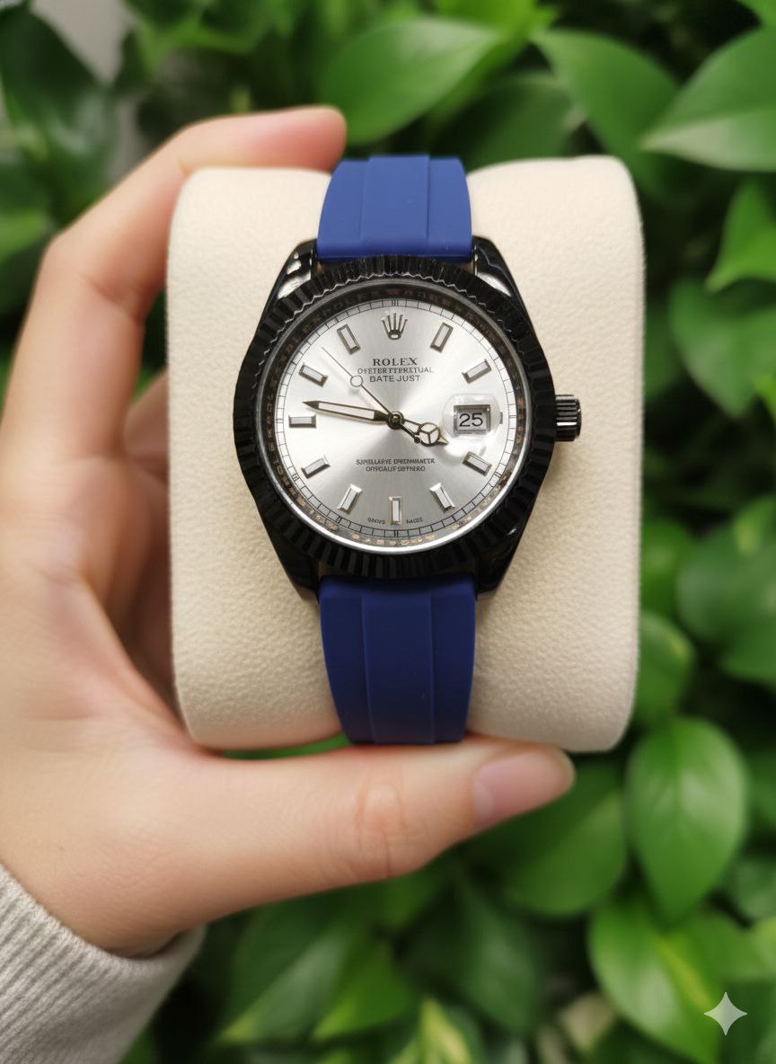 ساعت مچی مردانه رولکس دیت جاس quality ROLEX با بند رابر درجه یک و قاب استیل رنگ ثابت انتخابی خاص و جذاب برای استایل روزانه است این مدل مجهز به موتور کوارتز درجه یک صفحه شب نما تقویم دار و تقویم تلسکوپی بوده و با قفل سگکی مقاوم در برابر آب و بند ضد حساسیت پوستی راحتی و دوام را تضمین میکند فروشگاه اینترنتی روبی مد این ساعت را به عنوان گزینه ای لوکس و کاربردی عرضه میکند.