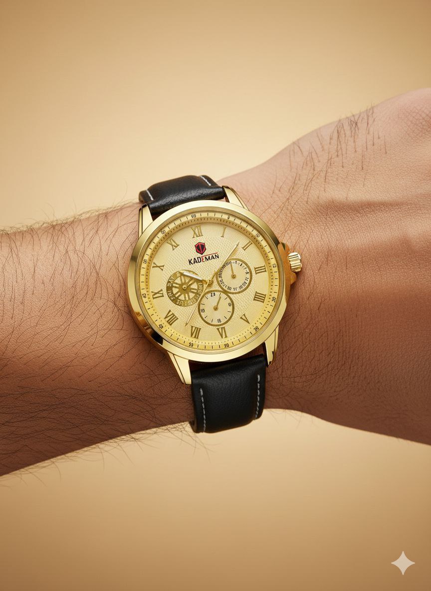 ساعت مچی سه موتوره مردانه کیدمن KADEMAN 2025 با بند چرمی اصل و طراحی شیک مجهز به سه موتور فول تایم نشانگر 24 ساعته شمارش معکوس روزشمار و موتور کوارتز دقیق است صفحه شب نما ضد آب رنگ ثابت و قفل کمربندی فولادی دوام و کارایی بالایی را تضمین میکند فروشگاه اینترنتی روبی مد این مدل را به عنوان انتخابی خاص برای استایل روزانه و رسمی عرضه میکند.