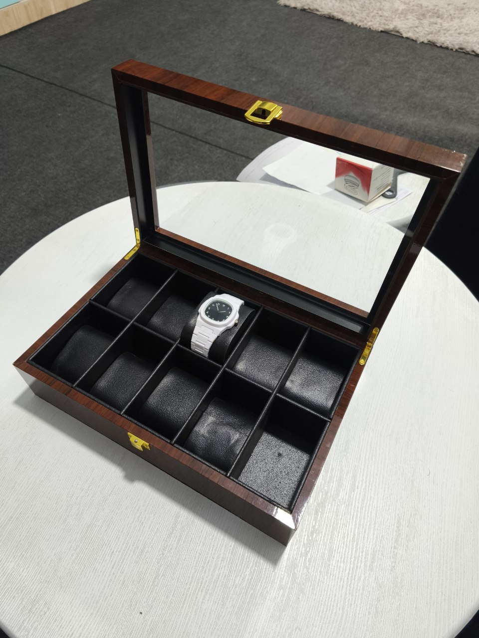 جعبه ساعت 10 خانه پلی استر لوکس ویترینی یا کلکسیونی
