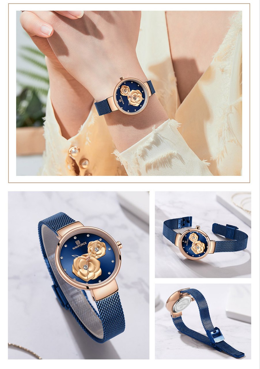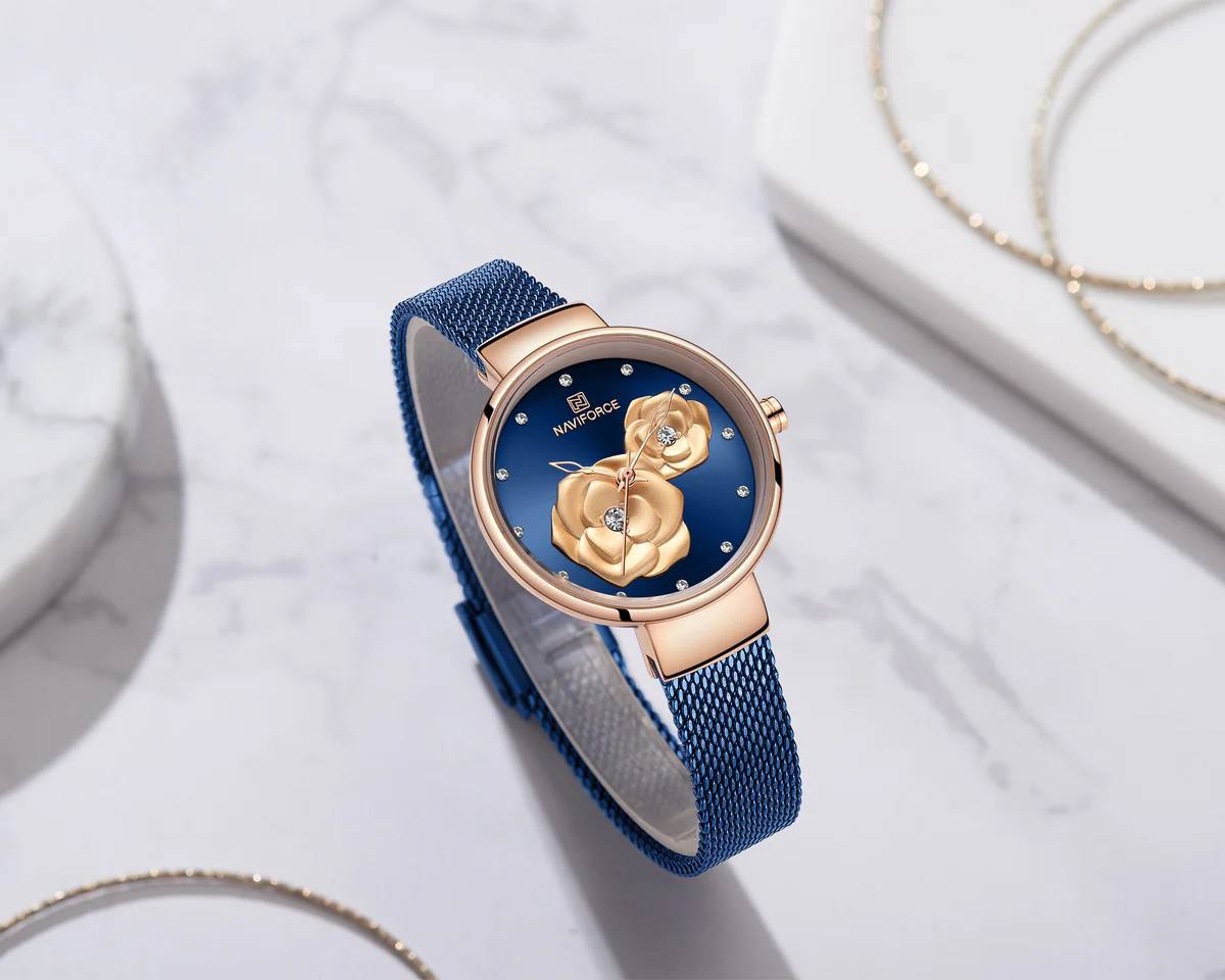 ساعت مچی عقربه ای زنانه نیوی فورس NAVIFORCE مدل Nf5013 طرح گل