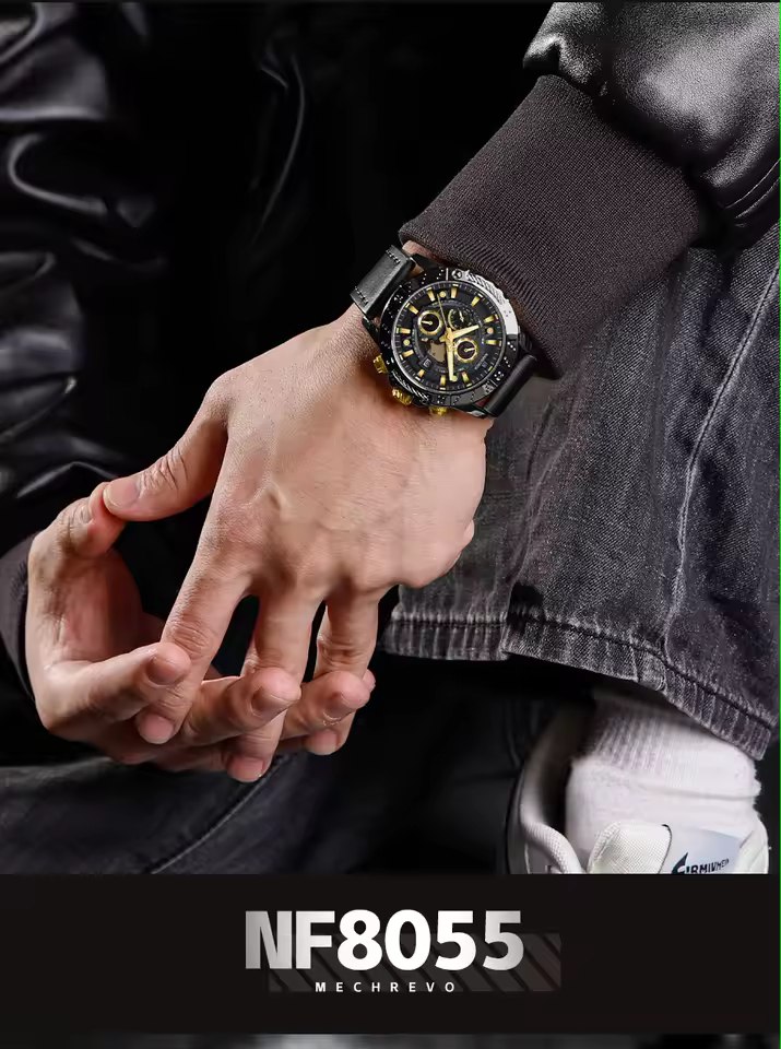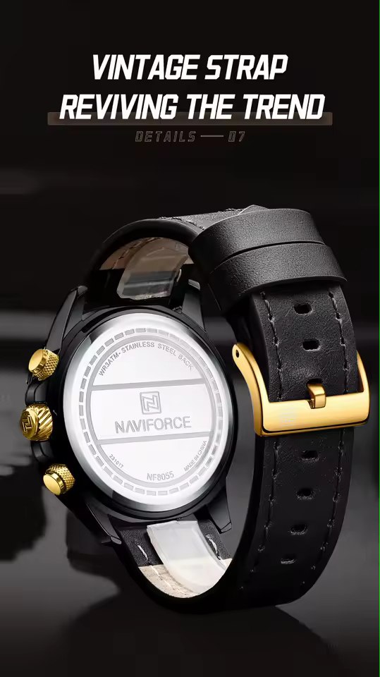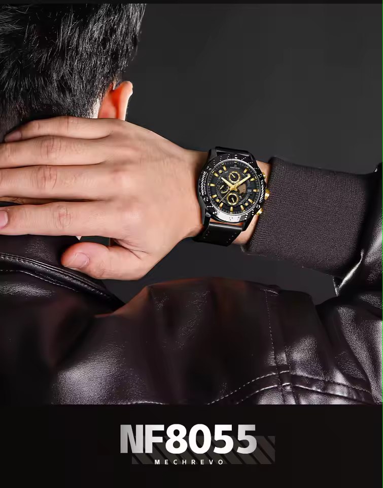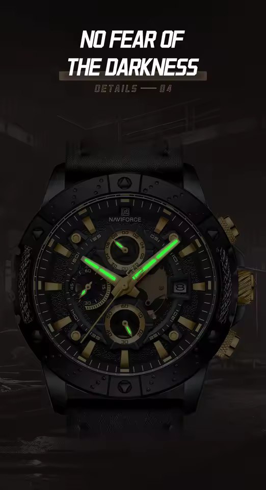 ساعت مچی کرنوگراف مردانه نیوی فورس NAVIFORCE مدل Nf8055 بند چرمی با طراحی اسپرت و کلاسیک انتخابی مناسب برای استایل روزمره و رسمی است این ساعت سه موتوره کرنوگراف ارجینال همراه با کارت گارانتی و جعبه عرضه میشود و مجهز به موتور ژاپن دقیق و قاب استیل مقاوم است شیشه معدنی ضد خش و عقربه شب تاب دوام و کارایی بالایی را تضمین میکند بند چرم دور دوخت ضد حساسیت پوستی با قفل کمربندی سوزنی راحتی و امنیت بیشتری فراهم میآورد فرم صفحه دایرهای ساده و جذاب جلوهای خاص به این مدل میدهد و قابلیت ضد آب آن استفاده روزانه را مطمئن میسازد این محصول را میتوانید از فروشگاه اینترنتی روبی مد تهیه کنید.