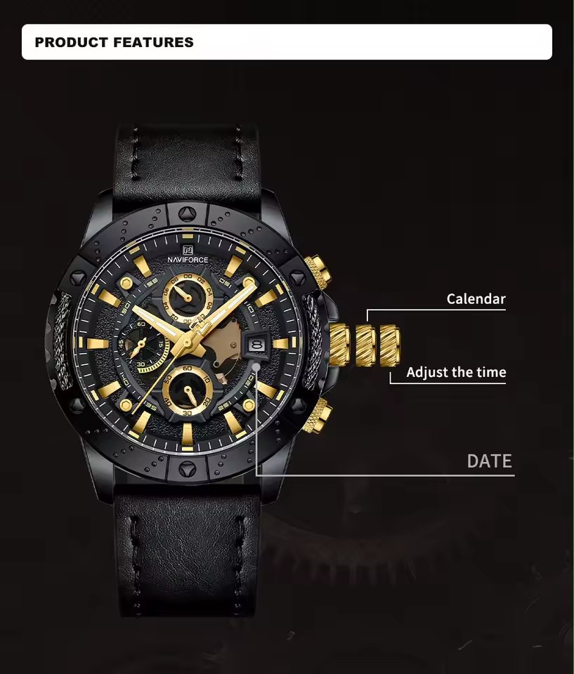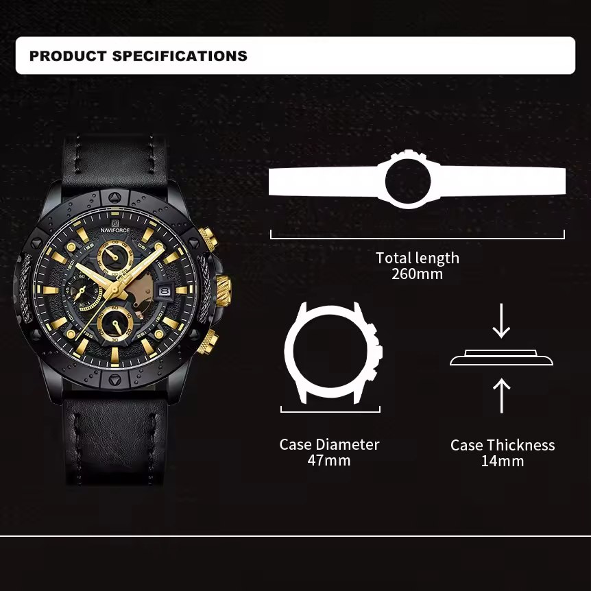 ساعت مچی کرنوگراف مردانه نیوی فورس NAVIFORCE مدل Nf8055 بند چرمی