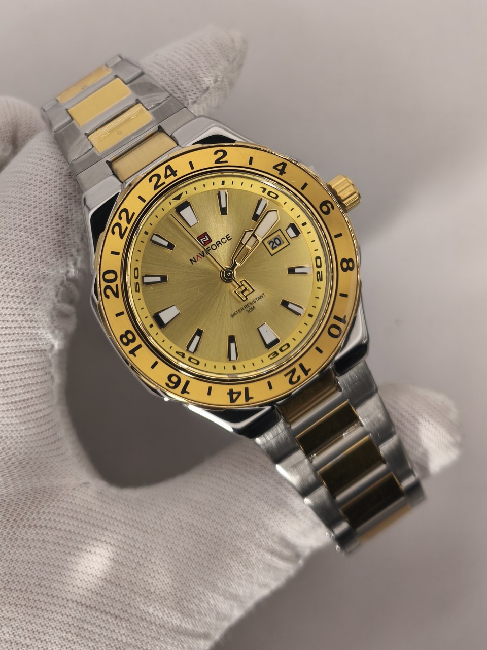 ساعت مچی عقربه ای مردانه نیوی فورس NAVIFORCE مدل Nf9249 اورجینال با طراحی شیک و کیفیت بالا انتخابی مناسب برای استایل روزمره و رسمی است این ساعت همراه با کارت گارانتی و جعبه عرضه میشود و مجهز به موتور ژاپن دقیق و قاب استیل مقاوم است شیشه معدنی ضد خش و عقربه شب نما دوام و کارایی بالایی را تضمین میکند بند استیل رنگ ثابت ضد حساسیت پوستی با قفل کلیپسی ضامن دار راحتی و امنیت بیشتری فراهم میآورد فرم صفحه دایرهای ساده و جذاب جلوهای خاص به این مدل میدهد و قابلیت ضد آب آن استفاده روزانه را مطمئن میسازد این محصول را میتوانید از فروشگاه اینترنتی روبی مد تهیه کنید.
