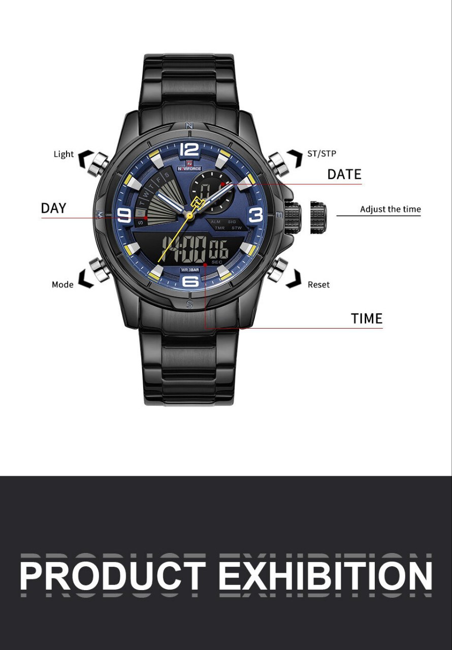 ساعت مچی کرنوگراف مردانه نیوی فورس NAVIFORCE مدل Nf9257 بند استیل