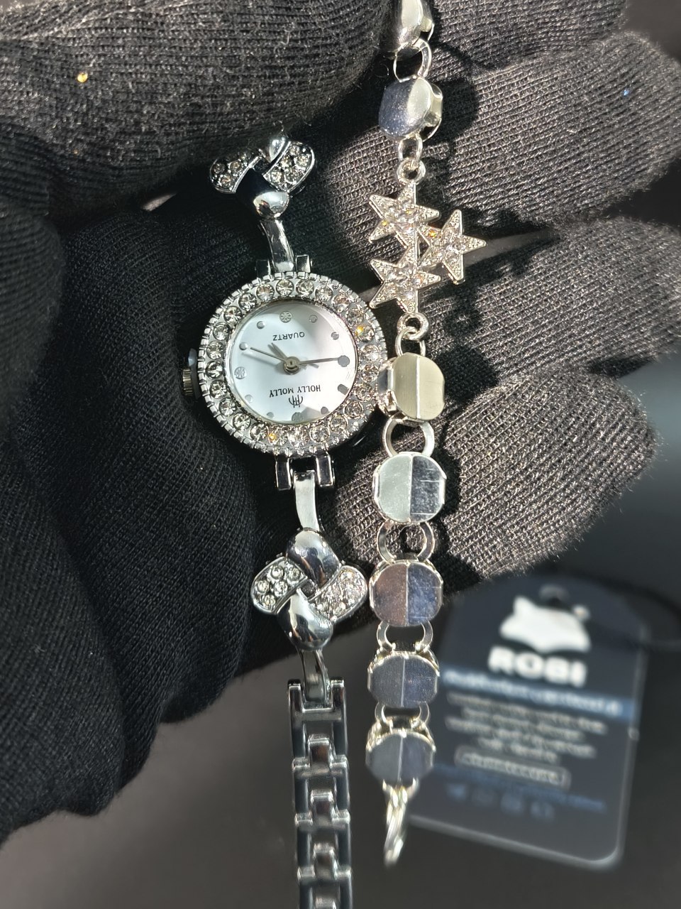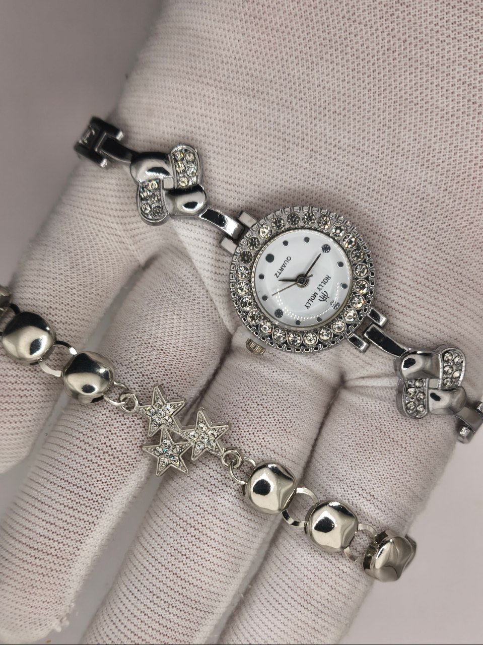ست ساعت و دستبند دخترانه نگینی برند هولی مولی طرح ستاره