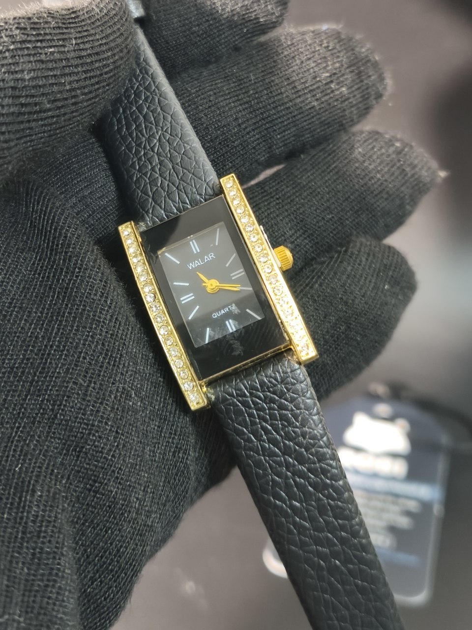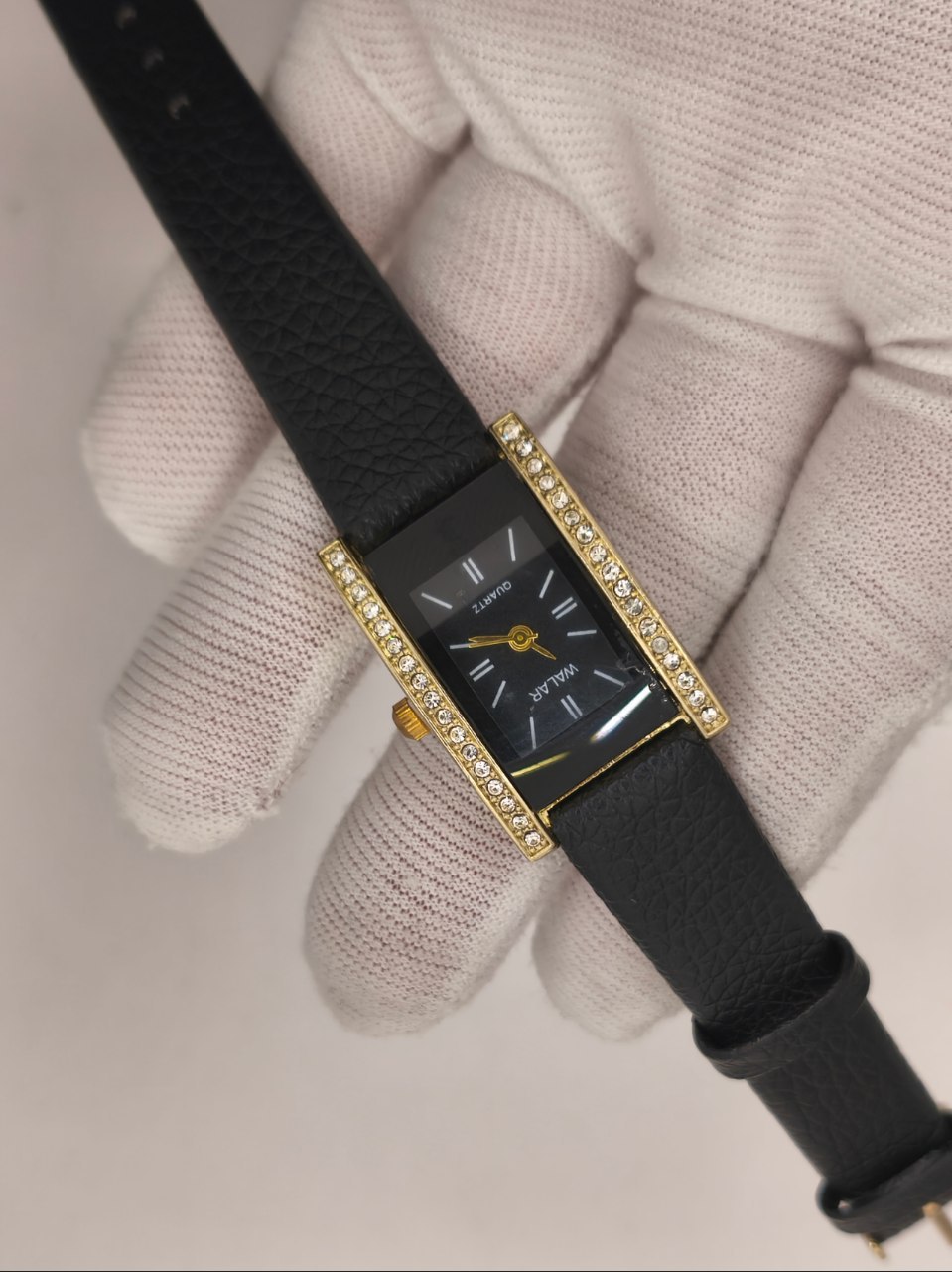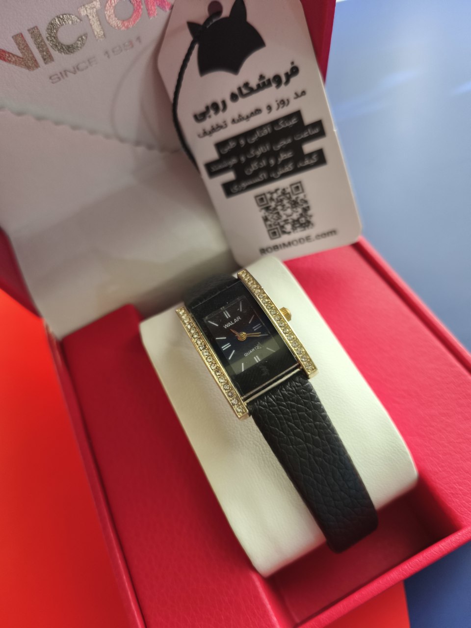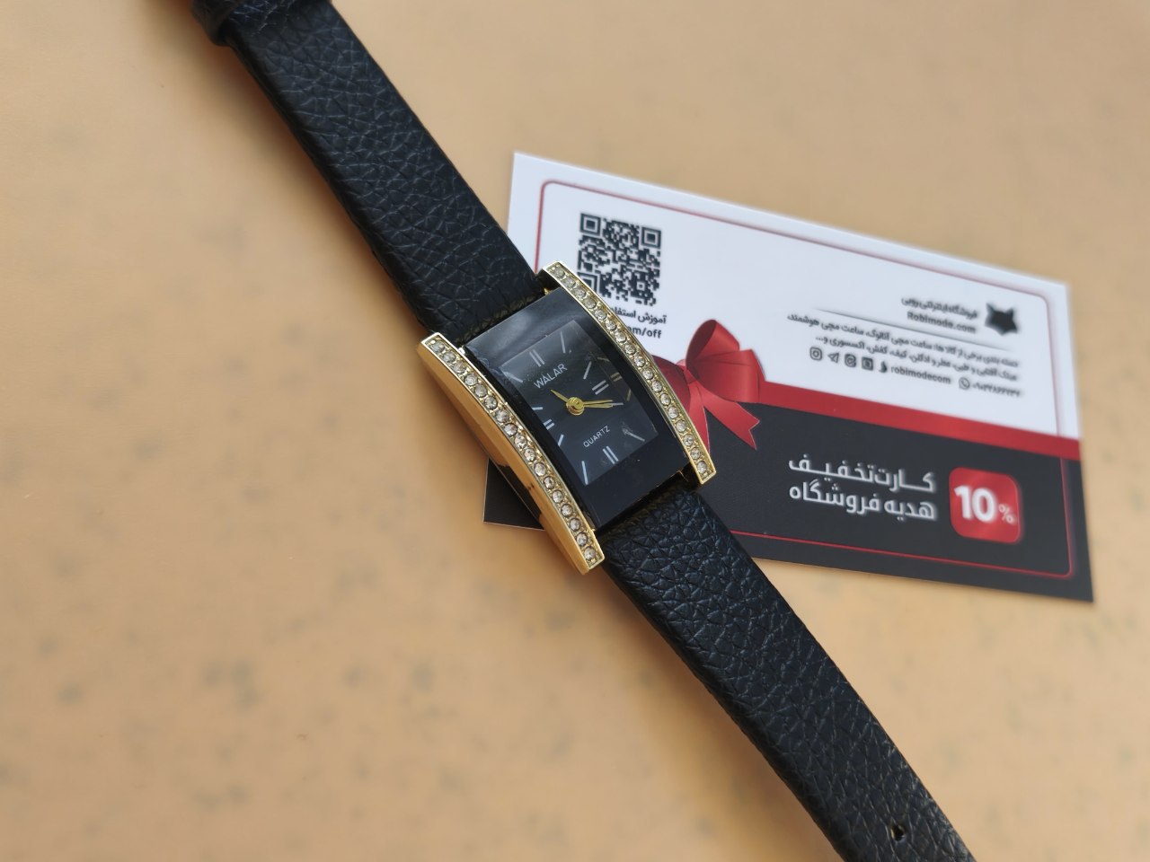 ساعت مچی زنانه صفحه مستطیل والا WALAR بند چرمی صفحه مشکی