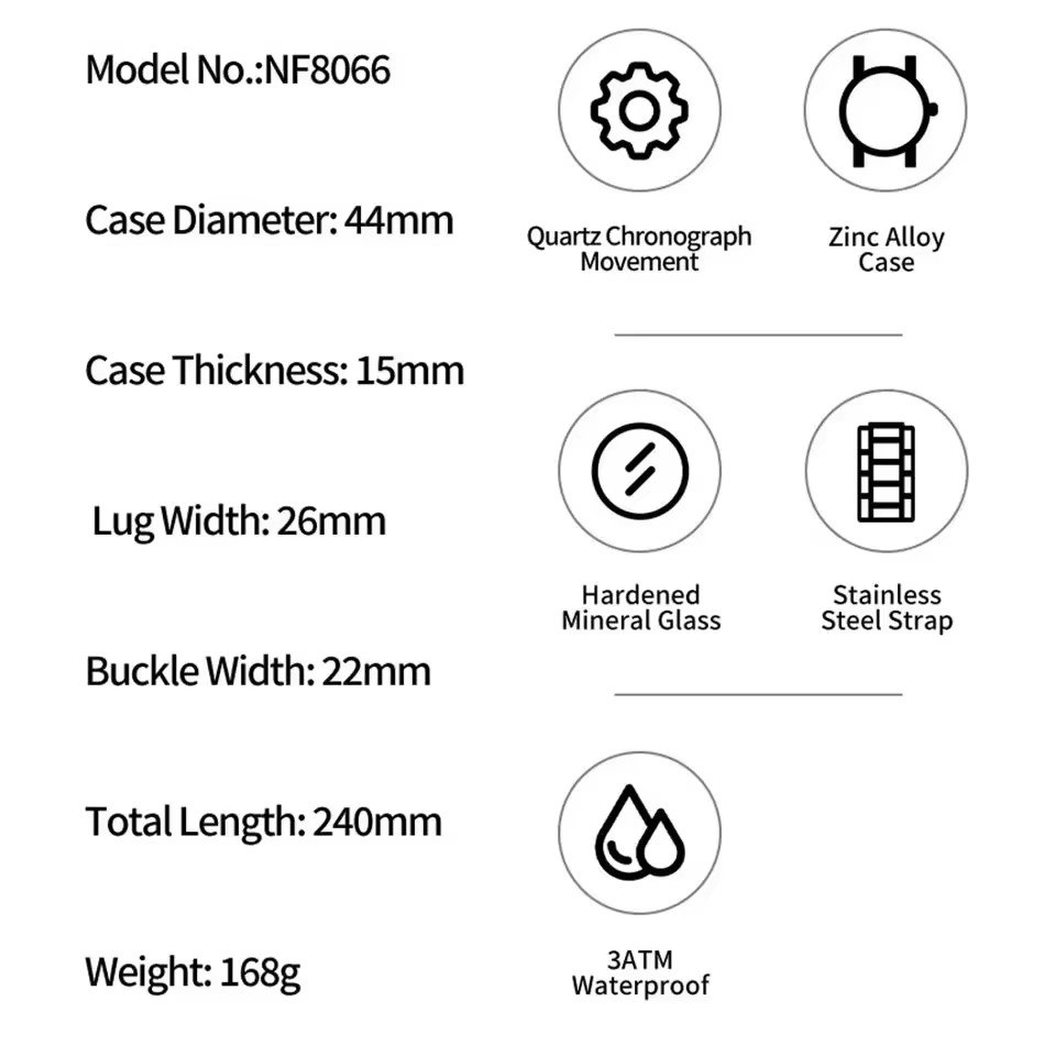 ساعت مچی کرنوگراف مردانه نیوی فورس NAVIFORCE مدل Nf8066 بند استیل