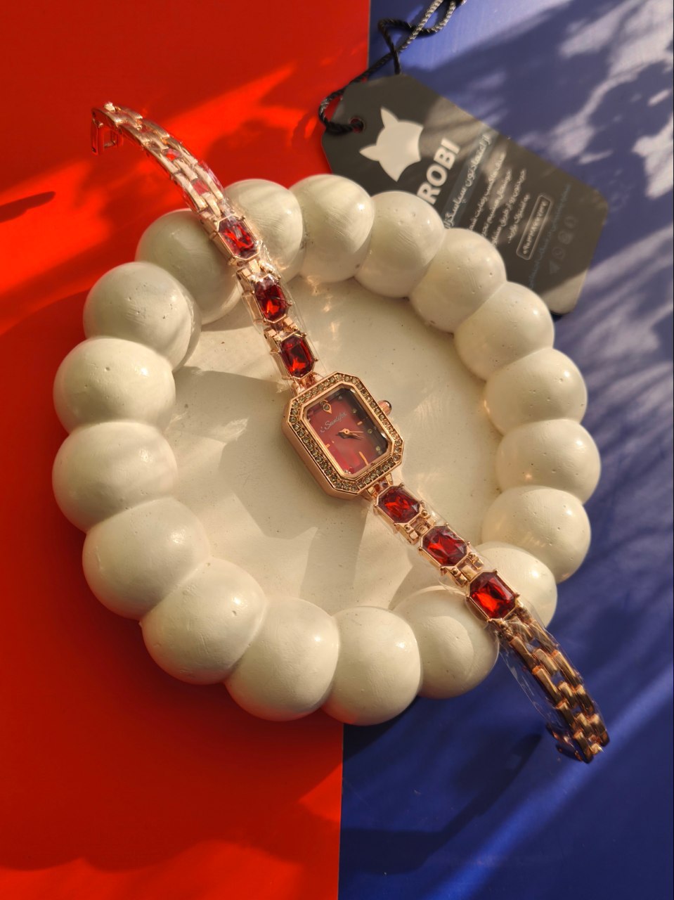 ساعت مچی دخترانه فول نگین الماسی Royal Crown با طراحی دستبندی و فرم صفحه دایره ای جلوهای لوکس و درخشان دارد نگینهای الماسی کامل با تراش کاری دقیق و آبکاری باکیفیت بالا زیبایی و دوام آن را تضمین میکنند صفحه صدفی طبیعی و مقاومت در برابر تغییر رنگ این ساعت را به انتخابی خاص و ماندگار تبدیل کرده است این محصول ویژه را میتوانید از فروشگاه اینترنتی روبی مد تهیه کنید.
